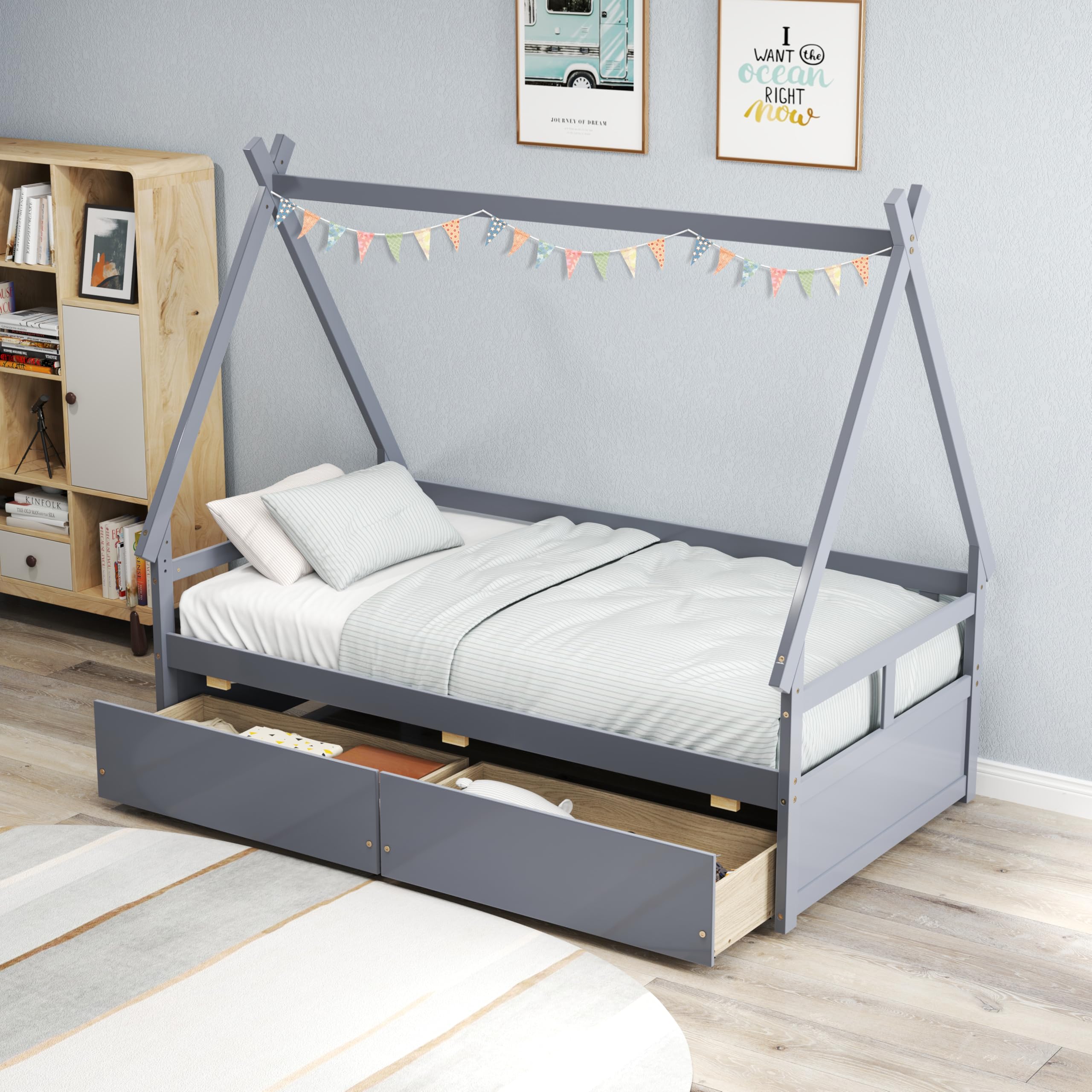 House Bed with Storage Drawers