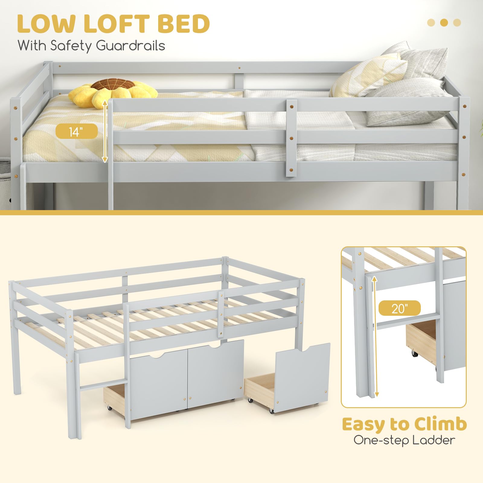 Children’s Low Loft Bed with Storage