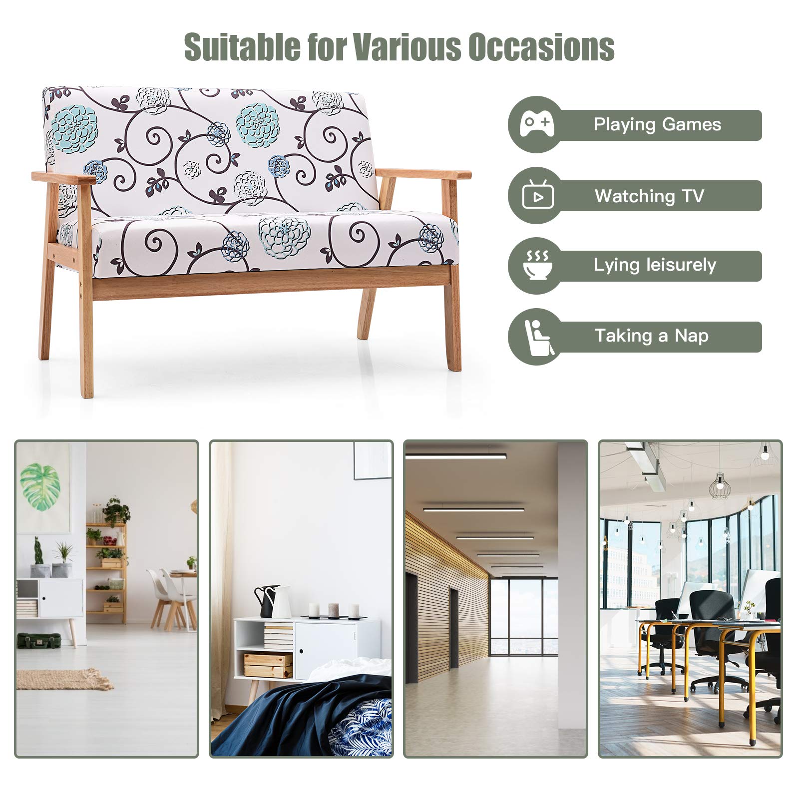 Relaxing while reading or watching TV, socializing with a partner. It’s suitable for apartments, bedrooms, home offices, guest rooms, or small nooks where compact and stylish seating is required.