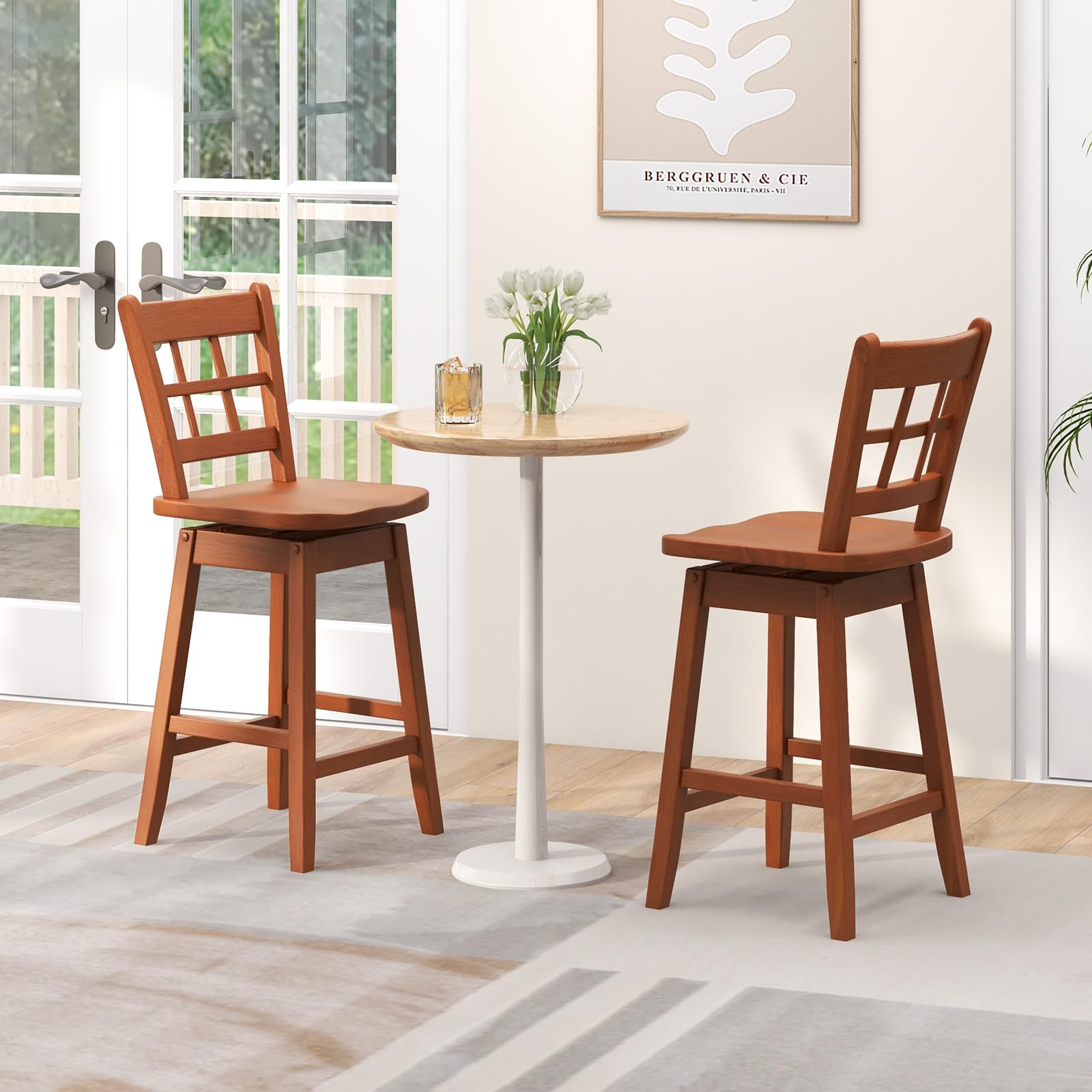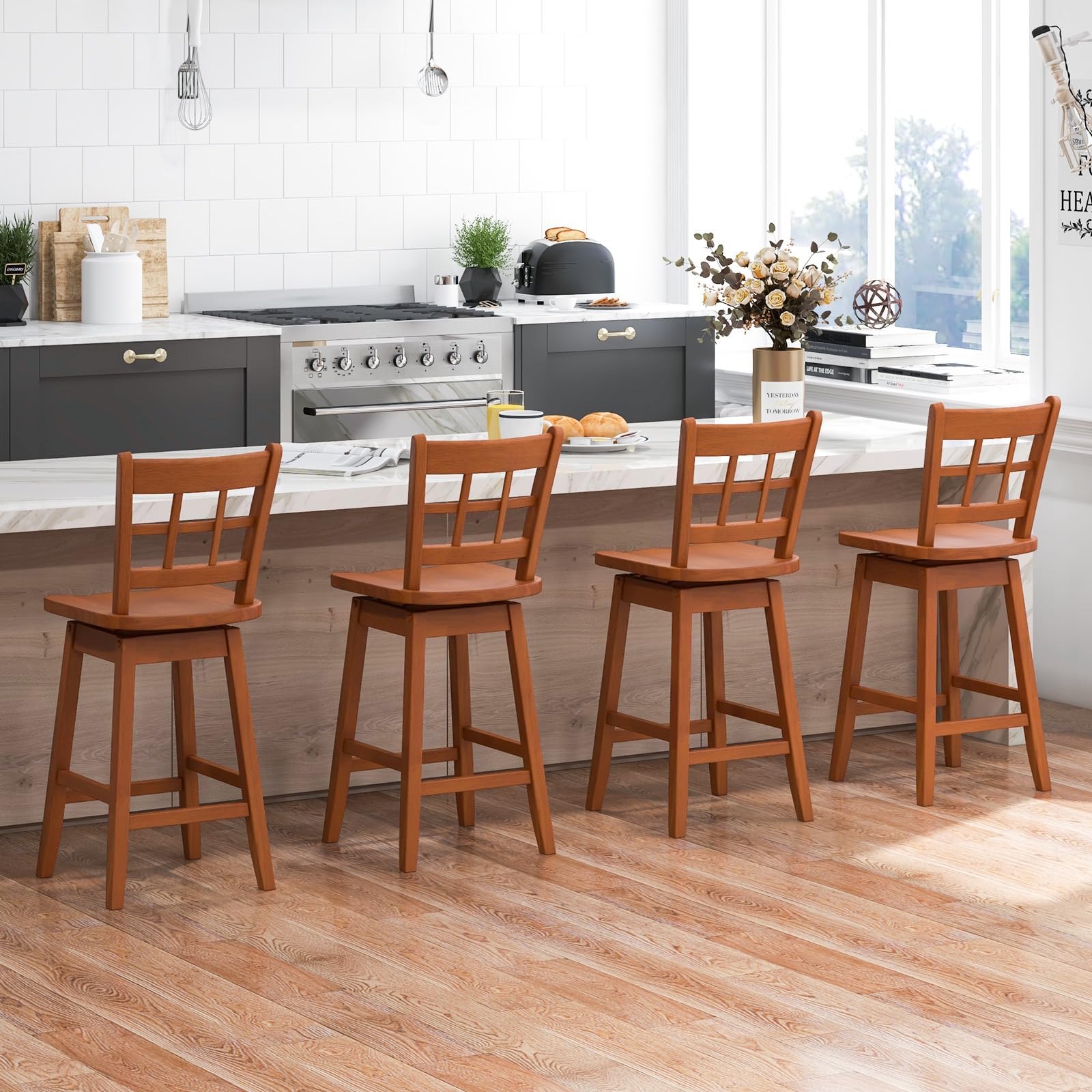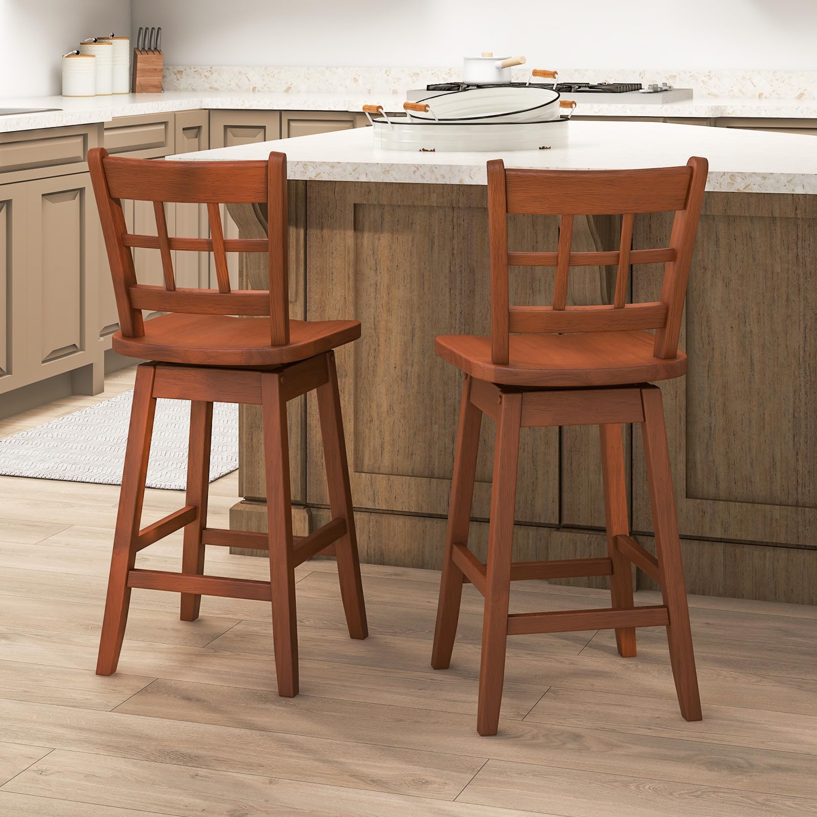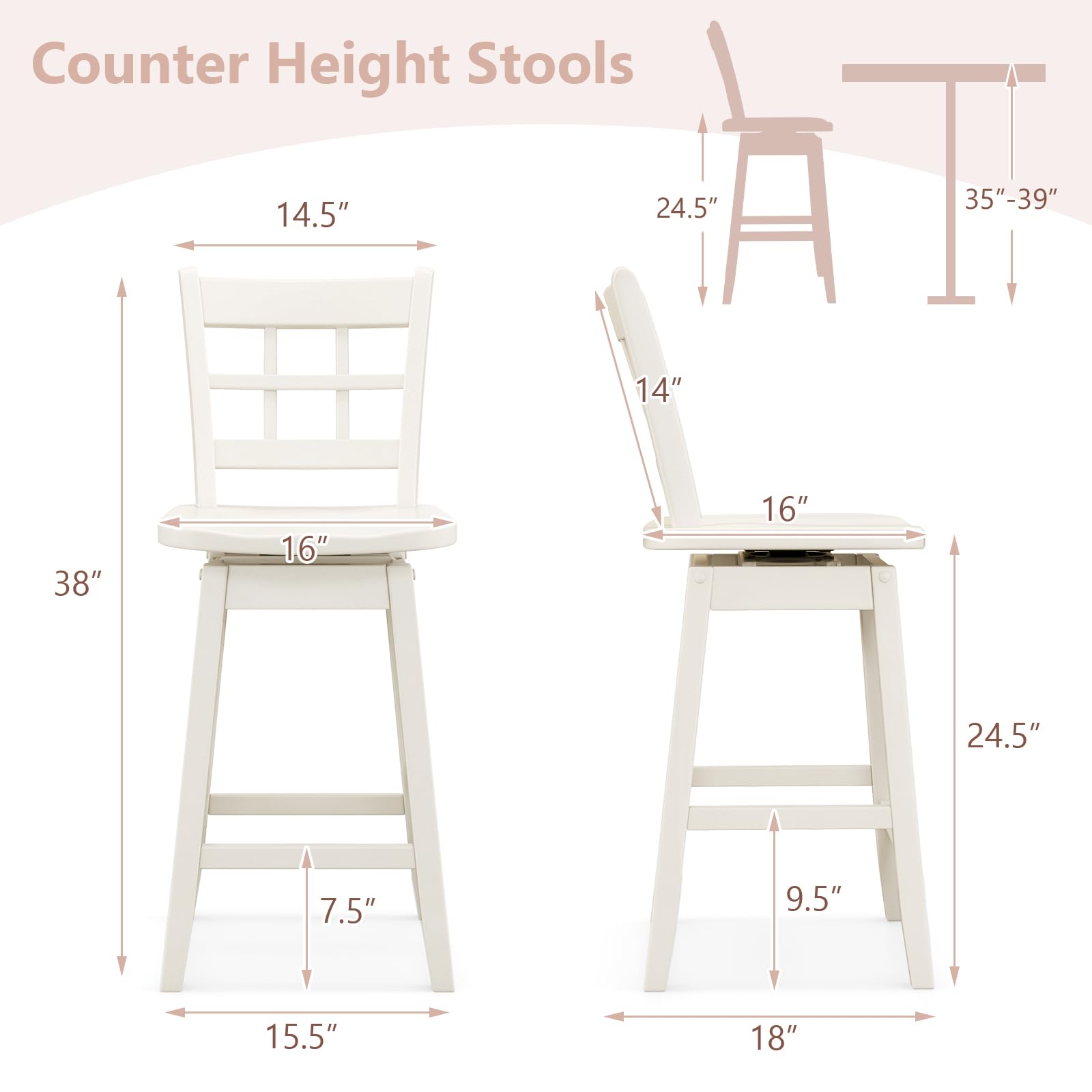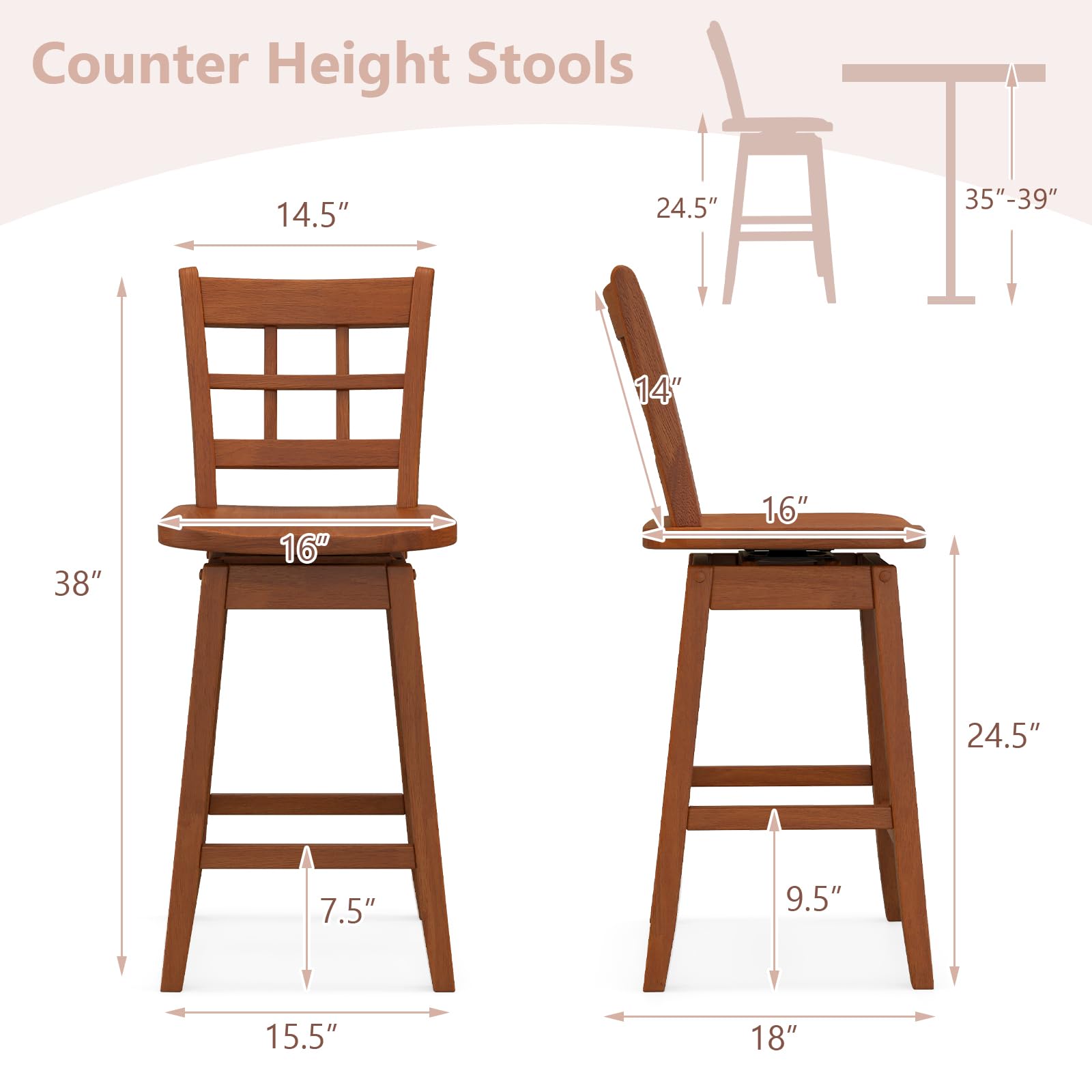This is a set of counter height stools perfect for dining or socializing at elevated surfaces like kitchen islands. With a classic design and modern comfort features, it combines practicality and aesthetic appeal.