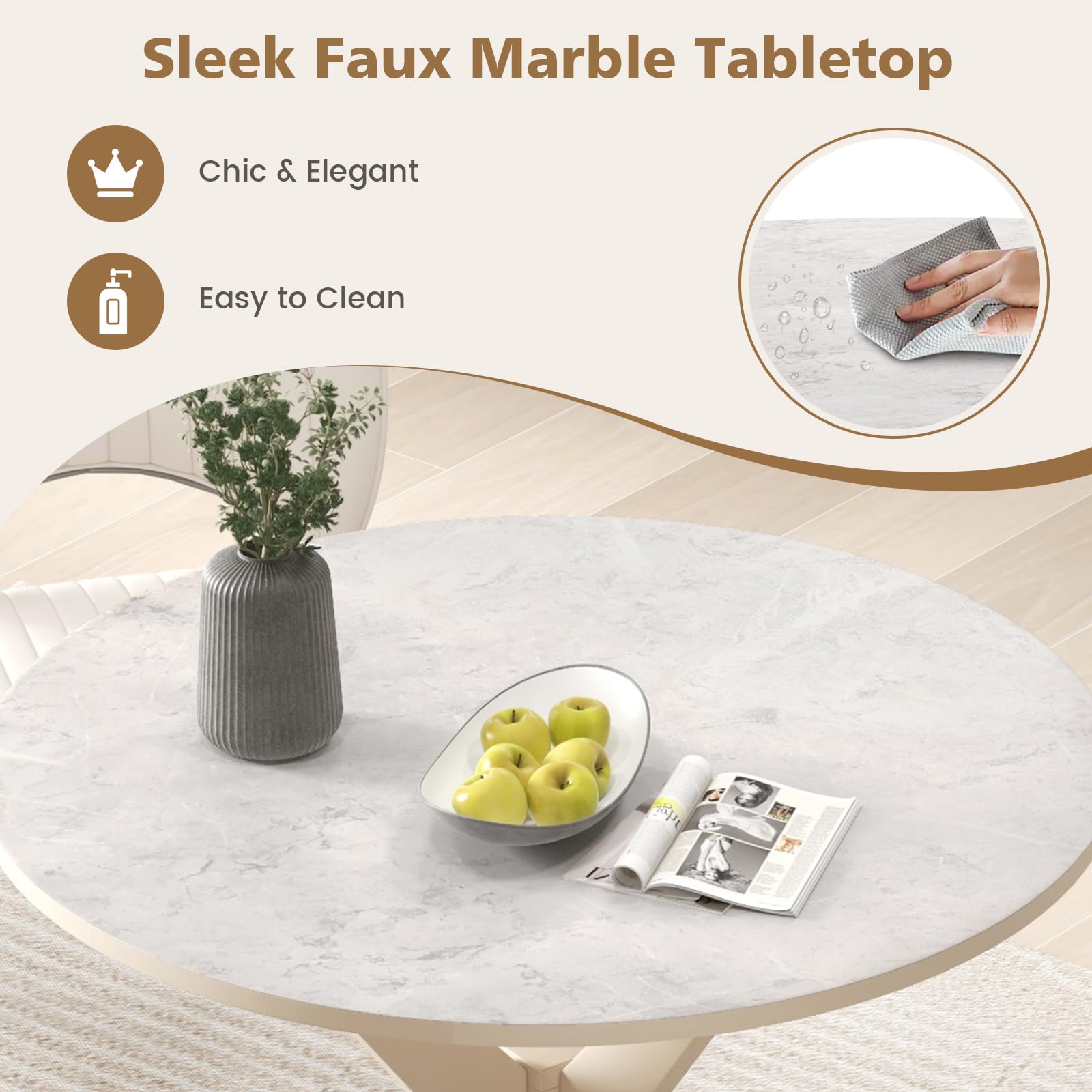 - Scratch – resistant and easy – to – clean faux marble or wooden tabletop