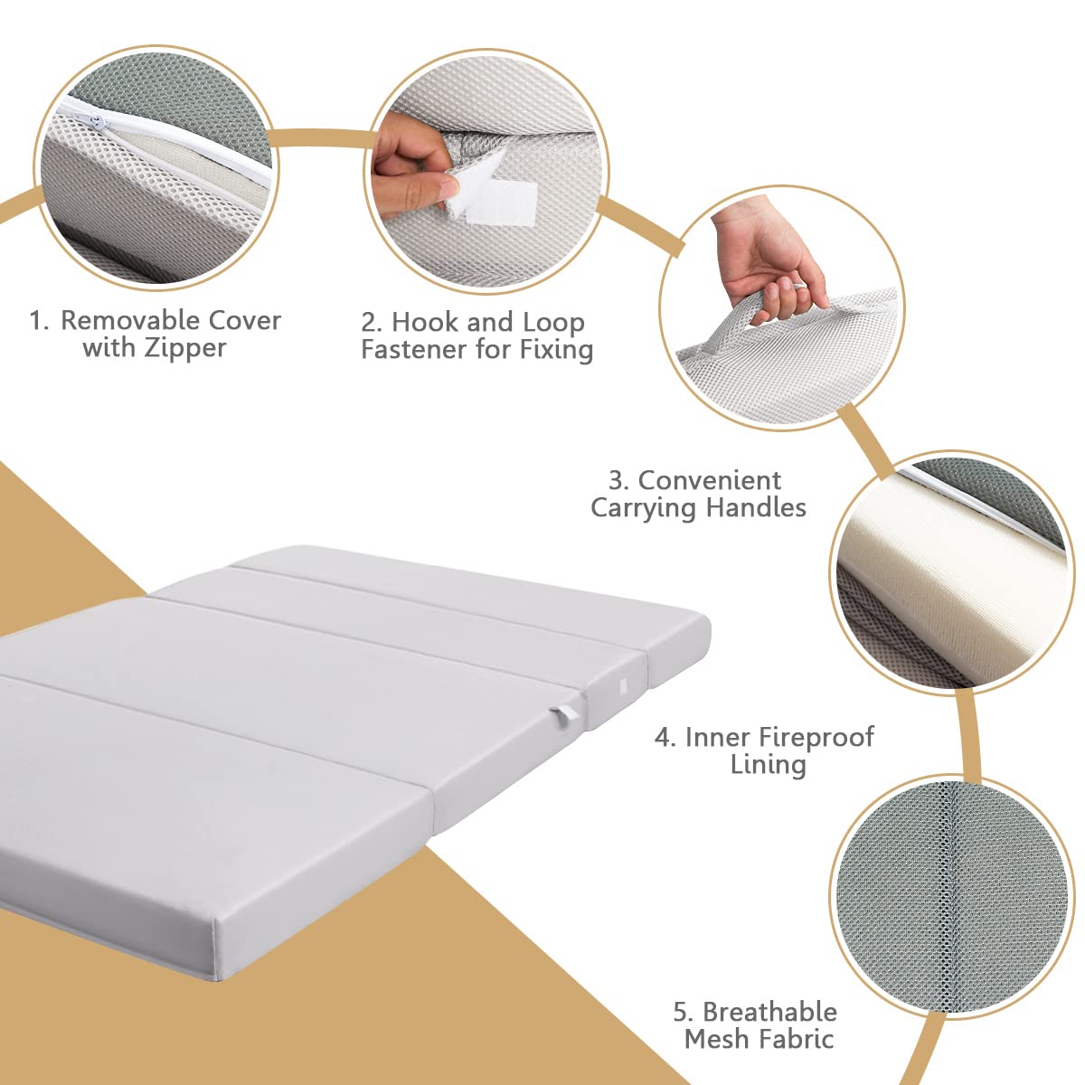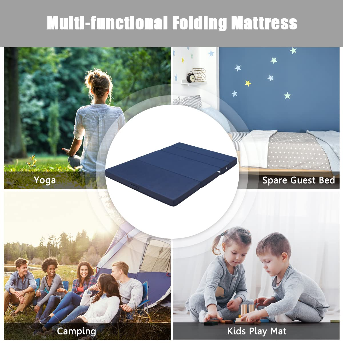 This is a highly versatile foldable and portable mattress. It can be easily transformed from a compact storage form to a comfortable sleeping surface. With its multiple features, it serves various purposes in different settings.