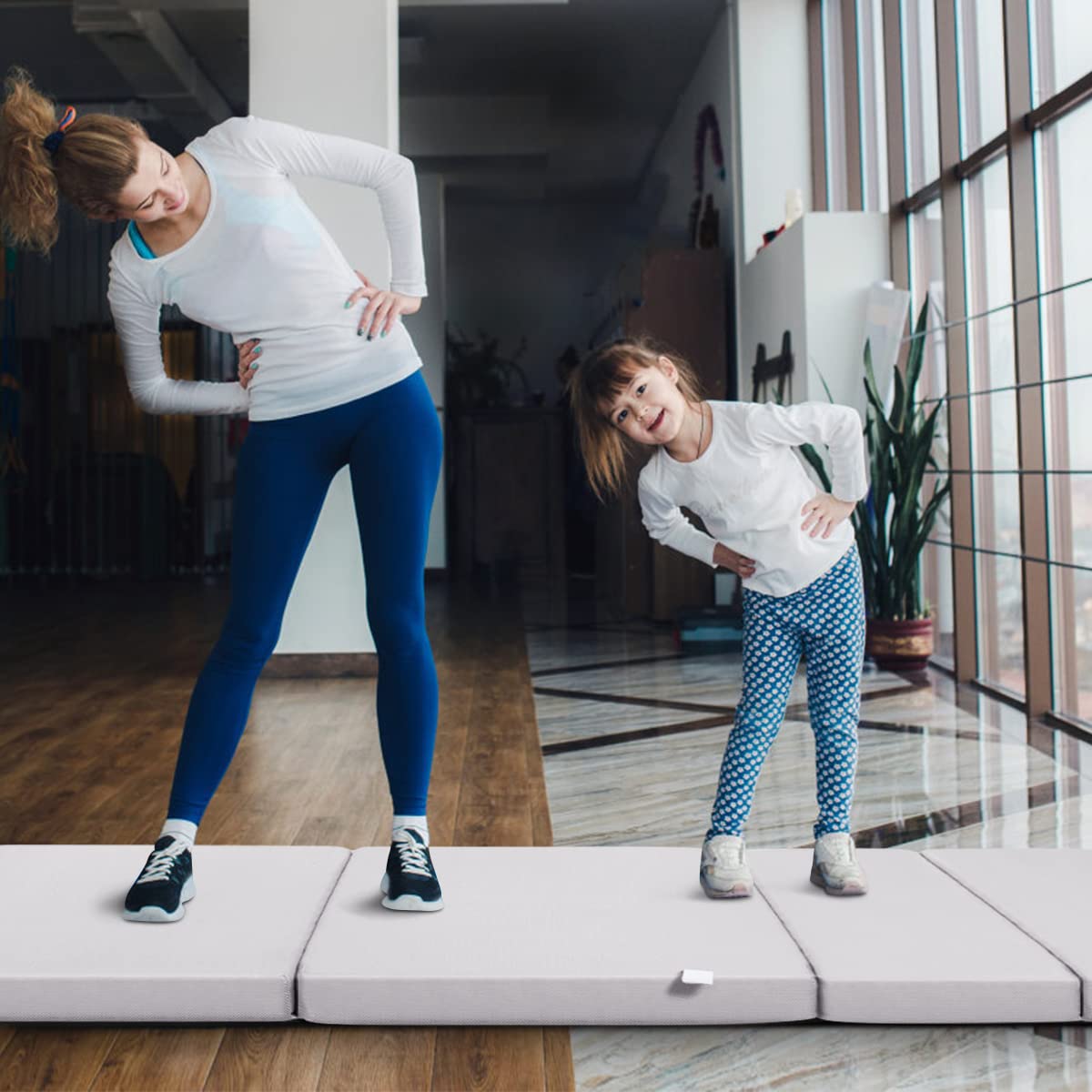 Guest accommodation, exercise and wellness activities like yoga, storage – friendly use in small spaces such as living rooms and offices, and as a play mat for children or even as seating when folded.