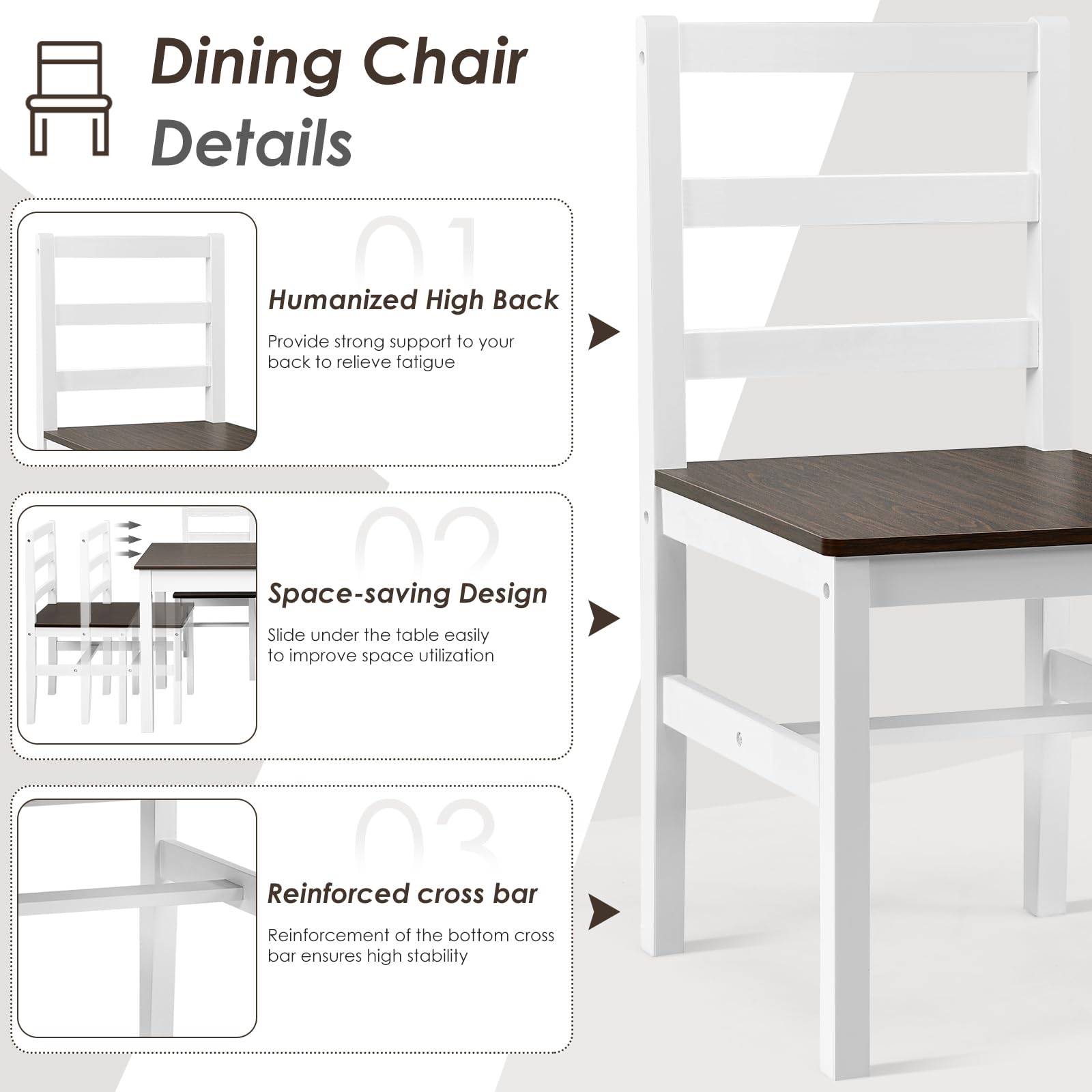 | Tabletop & Chair Seats Material | Dark brown (or espresso – toned) wood – like composite surface, likely engineered wood (e.g., MDF or particle board with a wood veneer finish) |