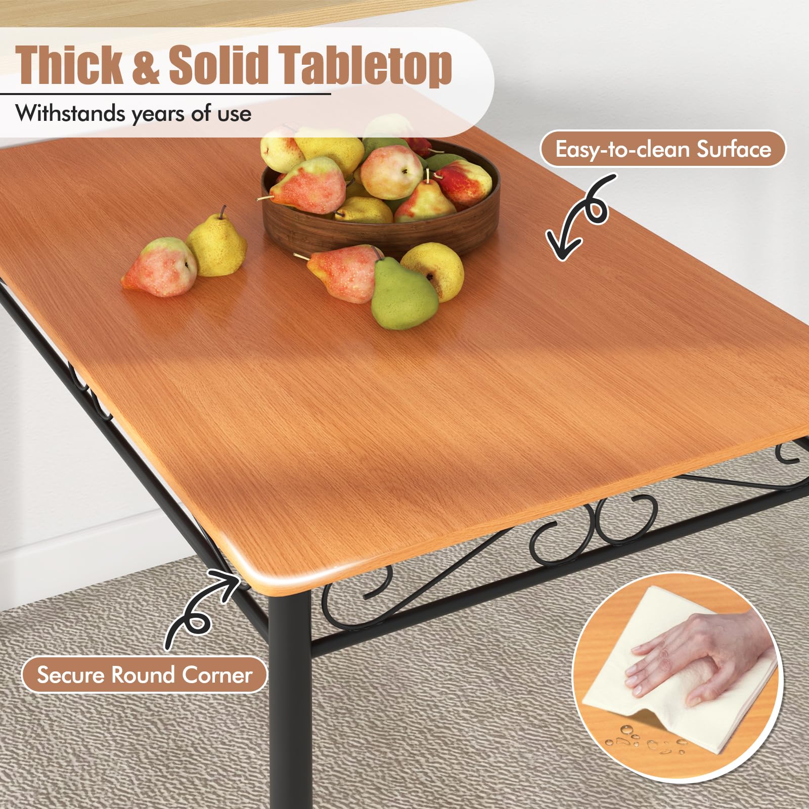 | Table Material | Heavy – duty metal (likely steel) frame/legs (black, decorative scrollwork) and wooden composite tabletop (light wood finish, smooth surface) |
