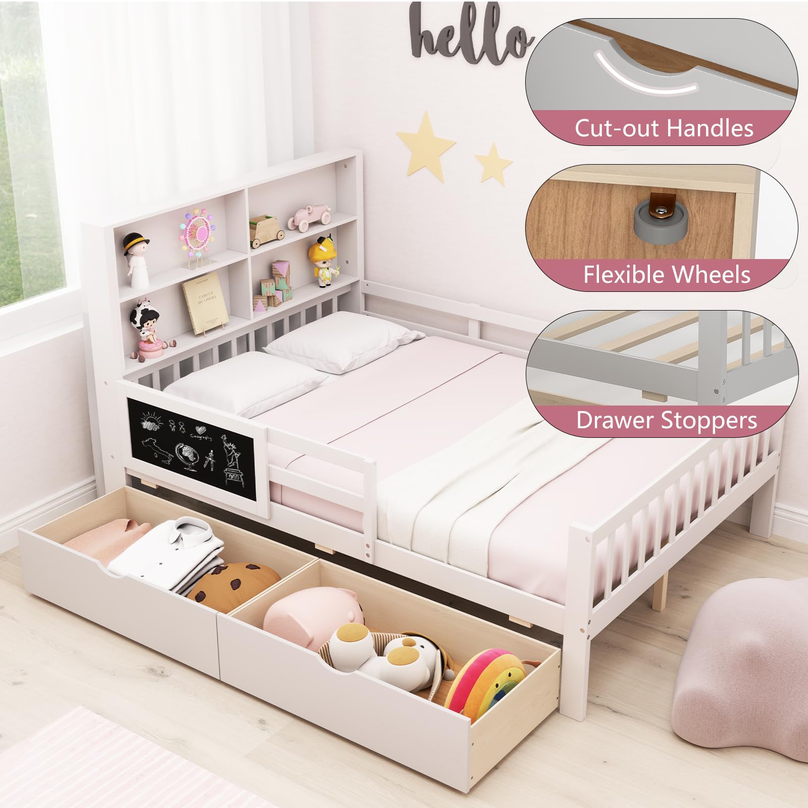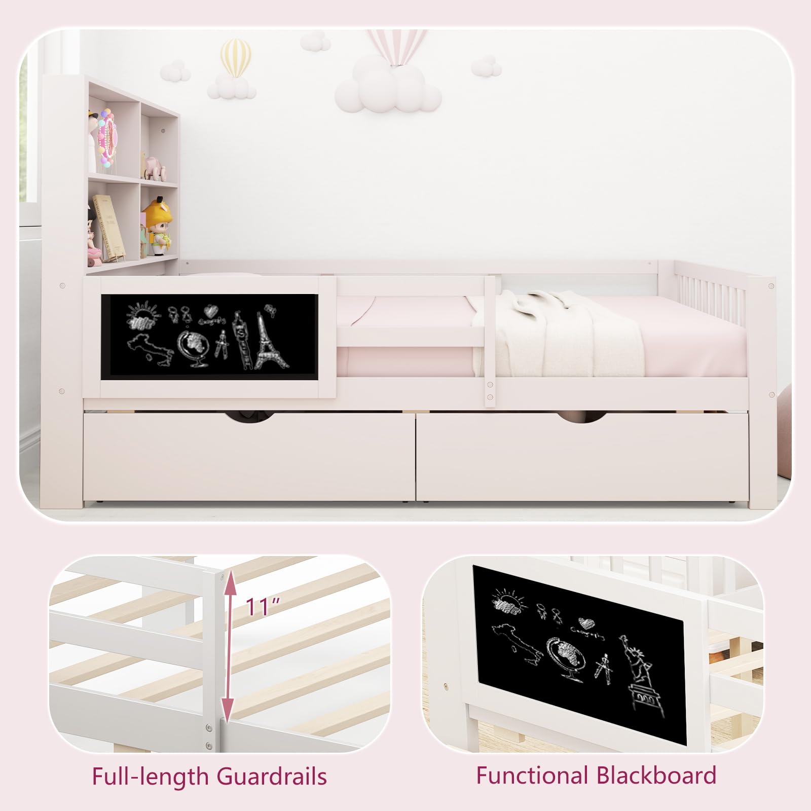 This bed is designed for children making the transition from a toddler bed. It offers a full – size sleeping area combined with practical storage and a fun chalkboard for creative play.