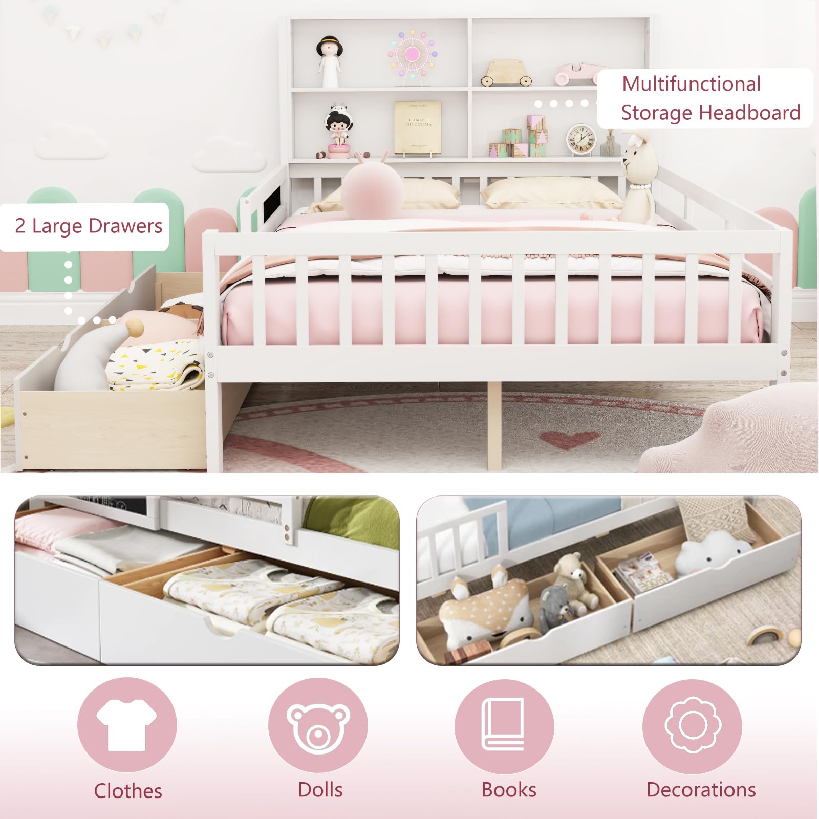 Children’s bedrooms, especially for those transitioning from toddler beds. It’s a great fit for creating a safe, organized, and fun sleeping space.