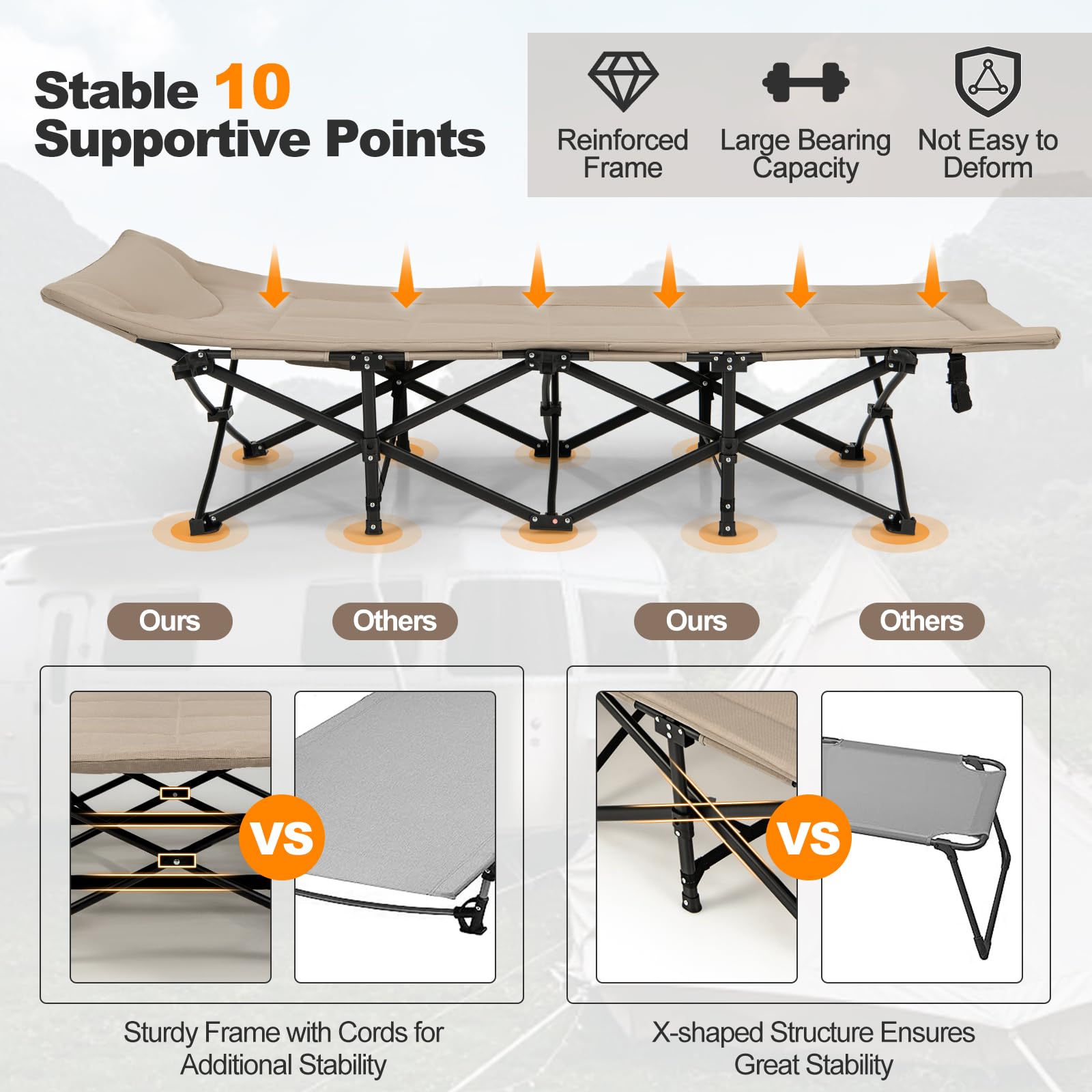 - Stable 10 Supportive Points: Features a 10 – point supporting frame with X – shaped structure for great stability. Made of premium metal square tubes, it’s durable and can support up to 450 lbs.