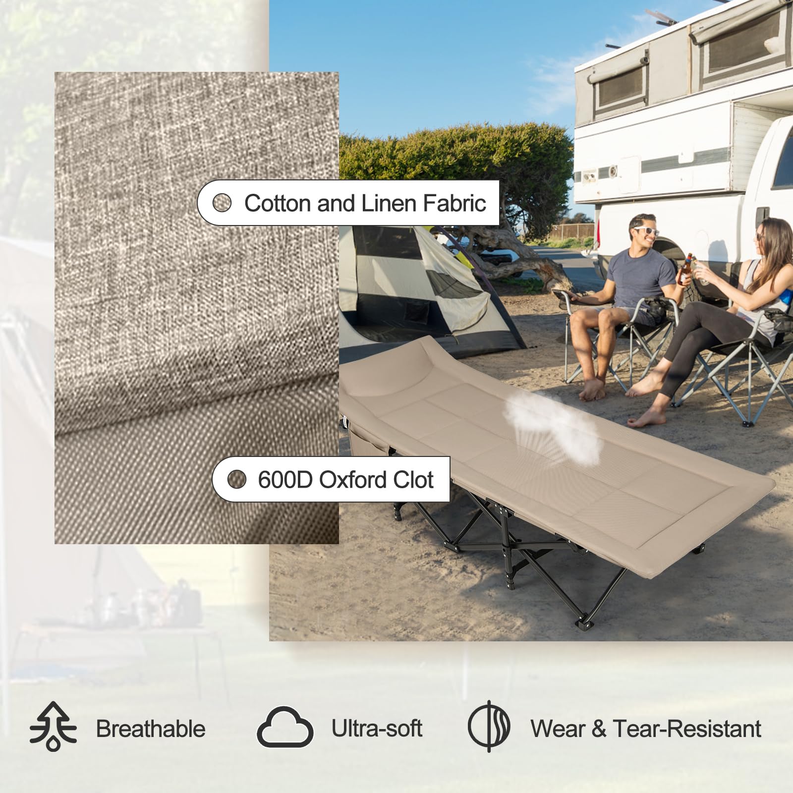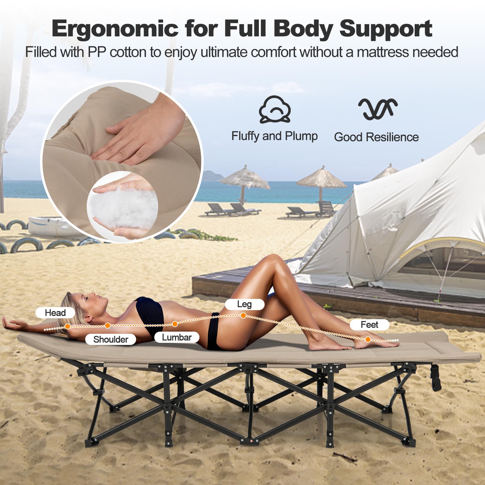 This camping bed is perfect for outdoor activities such as camping, picnics, and beach trips. It’s also suitable for temporary indoor sleeping needs, like in an office or during travel.