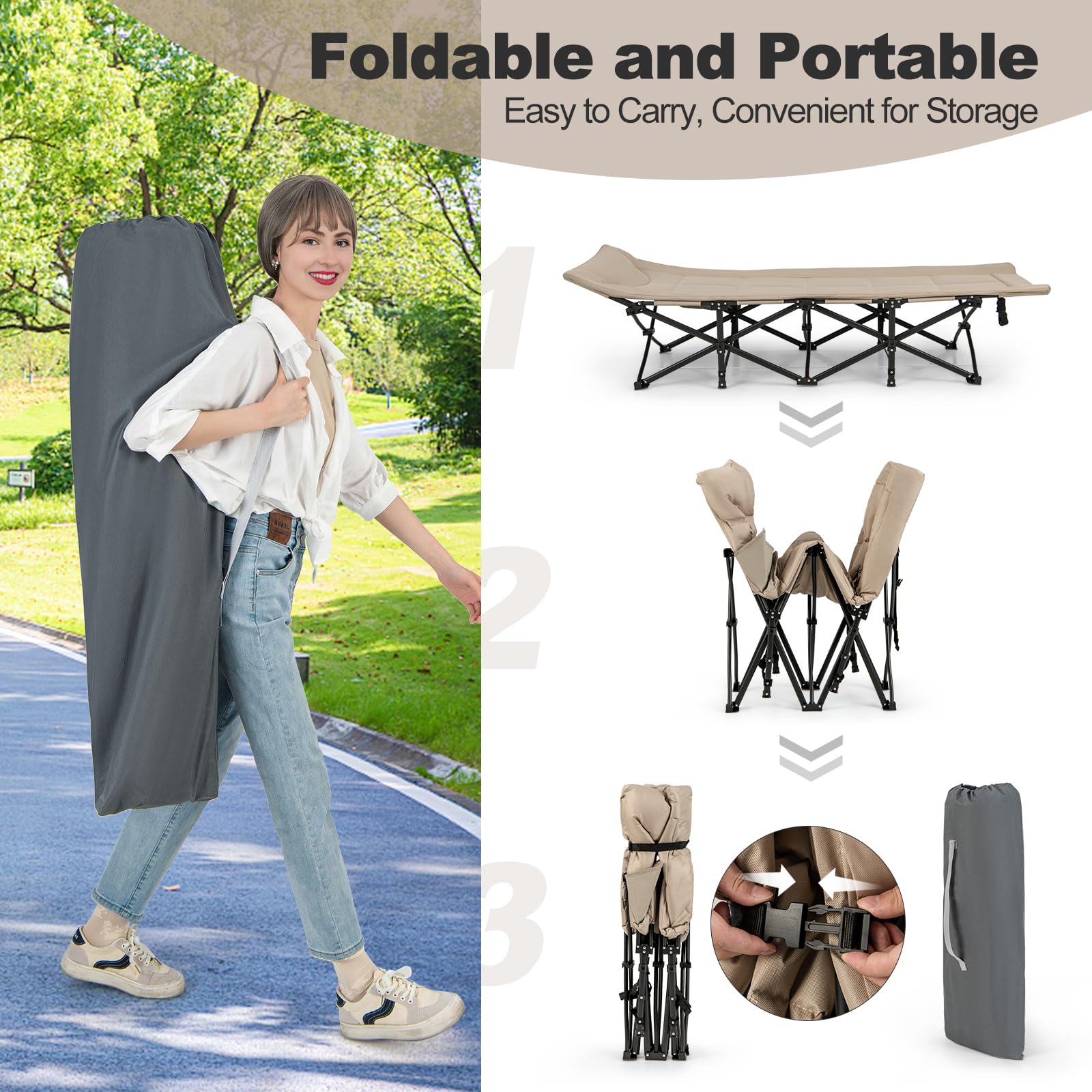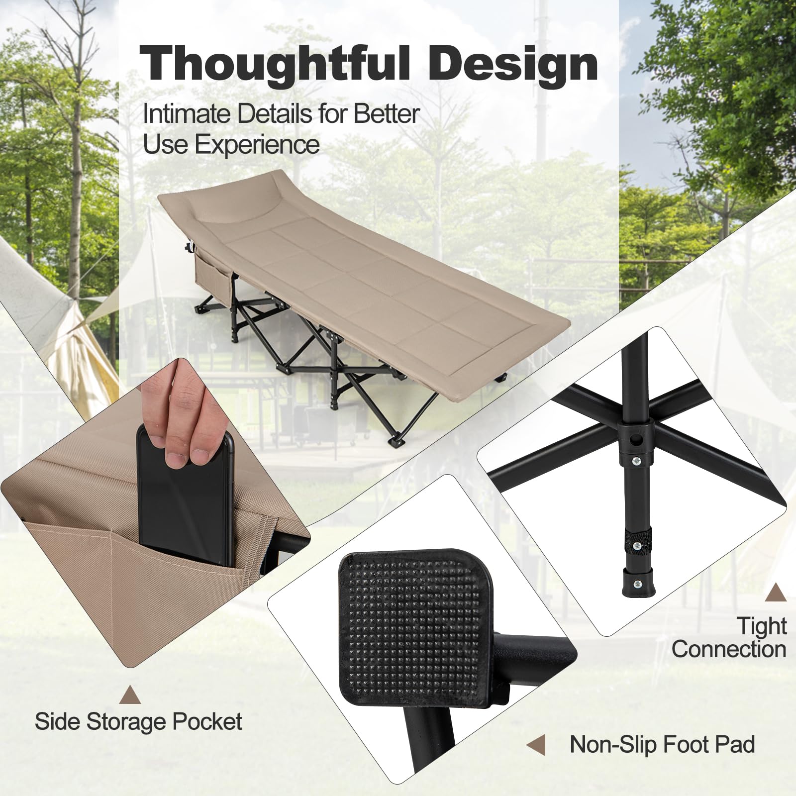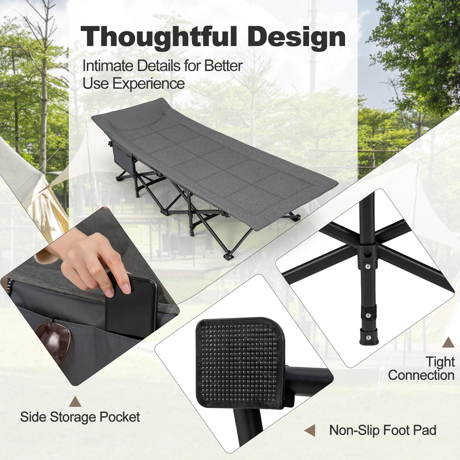 Experience ultimate comfort and convenience with this premium portable folding camping bed. Ideal for outdoor adventures, it offers a stable and comfortable sleeping surface, making your camping trips more enjoyable. Its thoughtful design and high – quality materials ensure long – lasting use.
