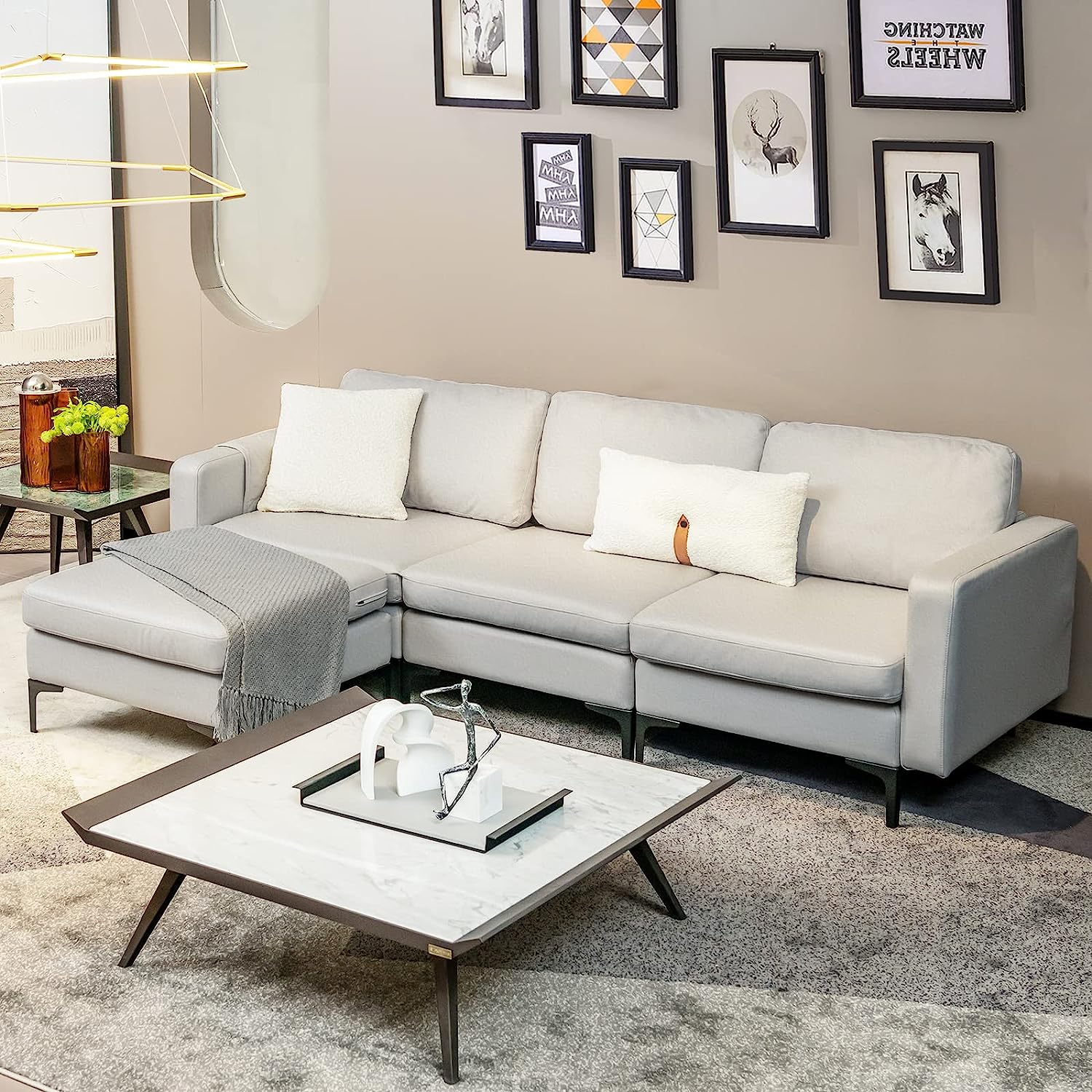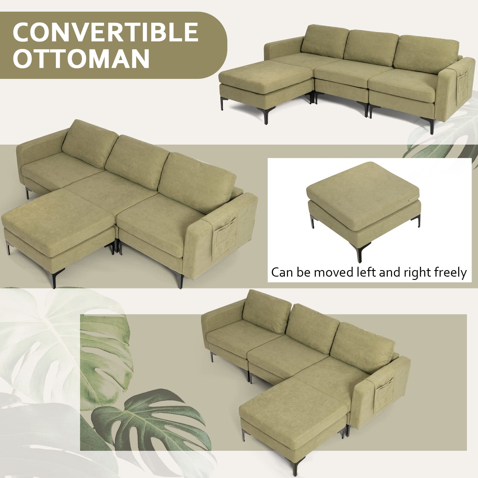 This modular sectional sofa comes with a convertible ottoman, offering great flexibility in your living space. It combines style and comfort, with various upholstery options to suit different interior design needs.