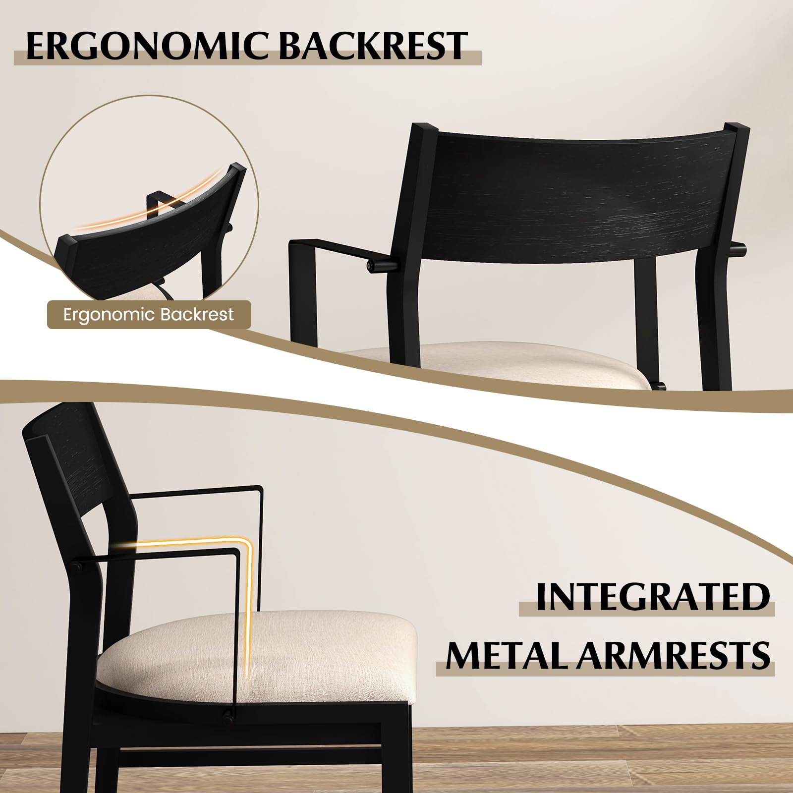 | Backrest | Black – finished wood or wood composite (ergonomic, curved) |