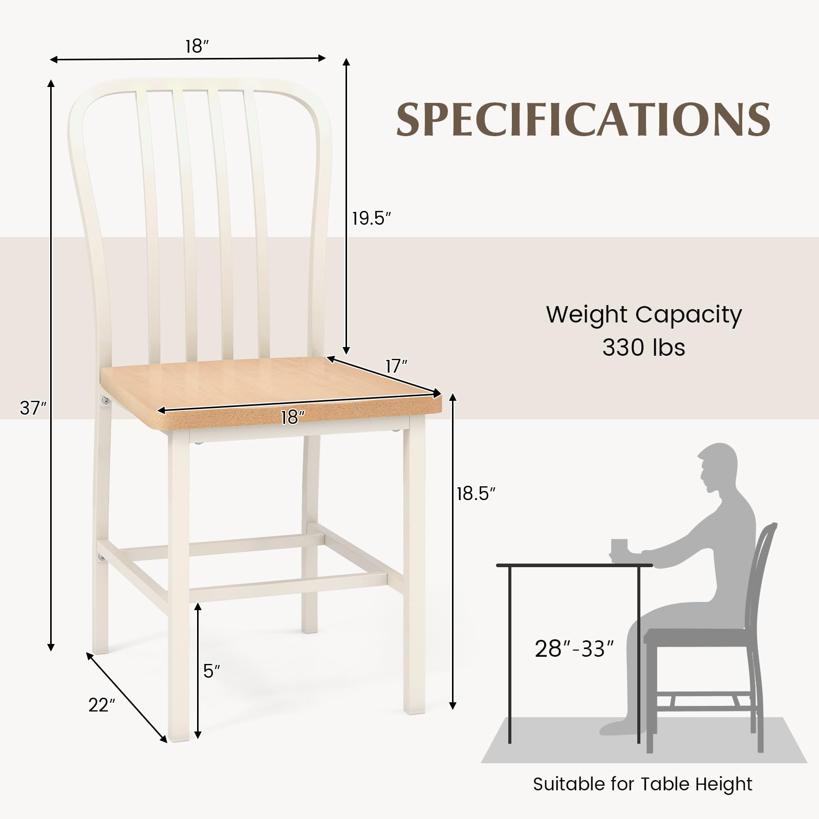 | Suitable for Table Height | 28″ – 33″ |