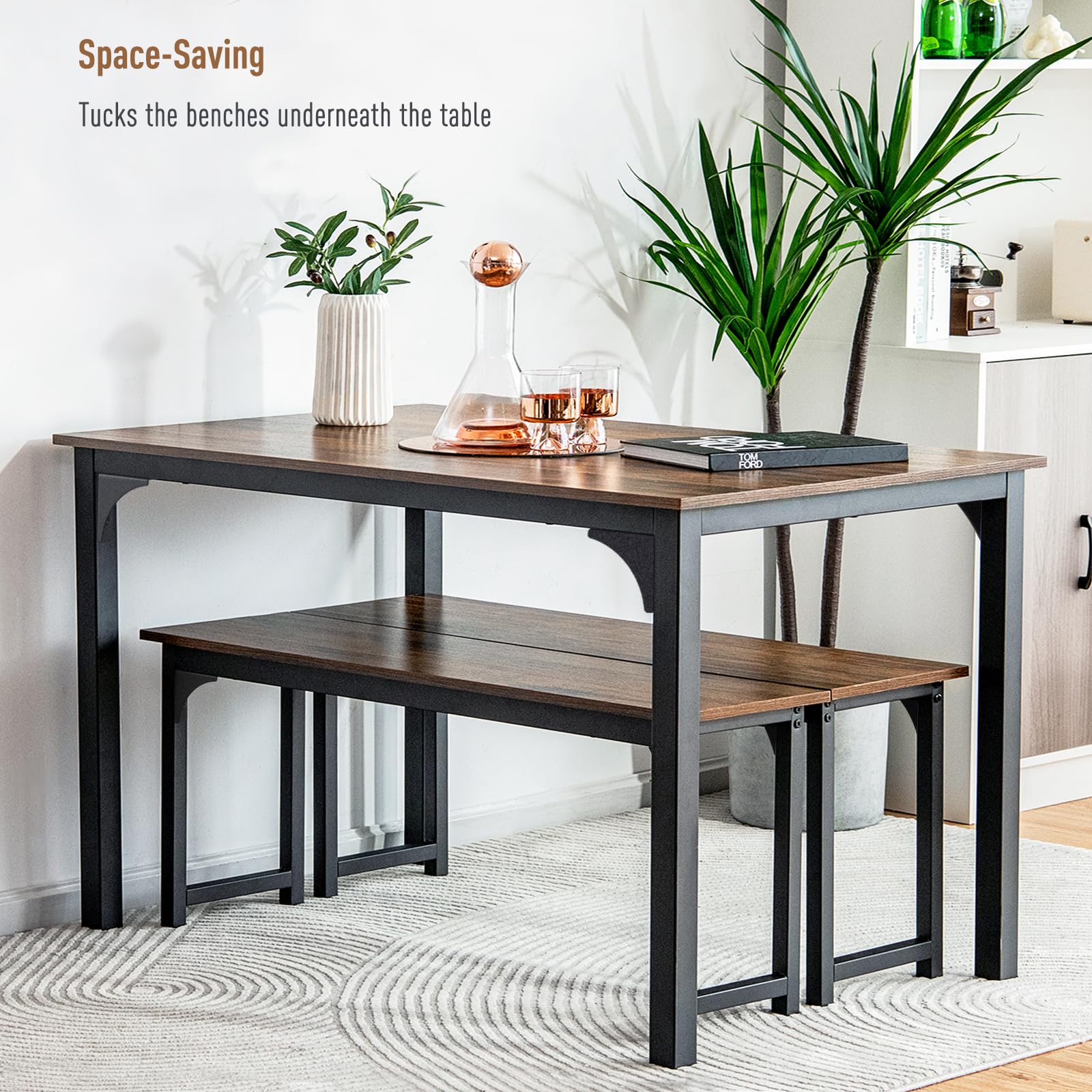 | Product Type | Compact dining set with table and two benches for small areas |