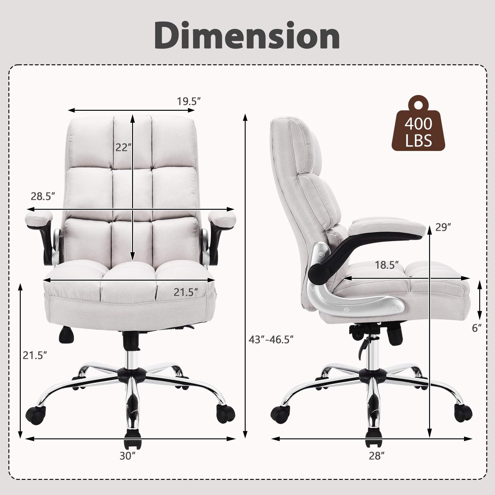 - Adjustable Height & Angle Setting: The computer desk chair can adjust the seat height within 43″ – 46.5″ and the backrest can tilt from 108° to 125°.