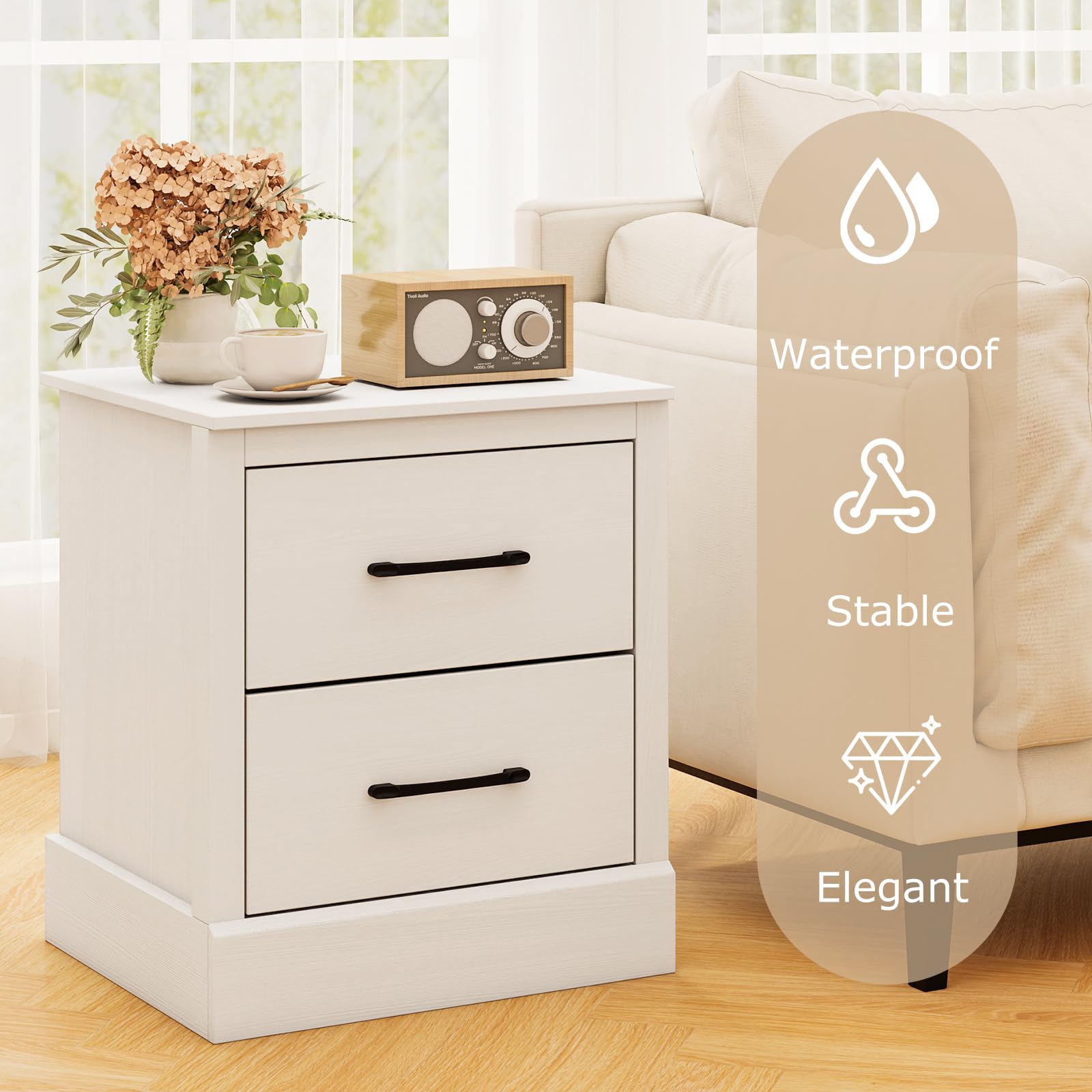 Bedroom storage next to a bed, holding essentials like lamps, phones, and books. Also suitable as a living room side table to hold decor, books, or a lamp near a sofa.