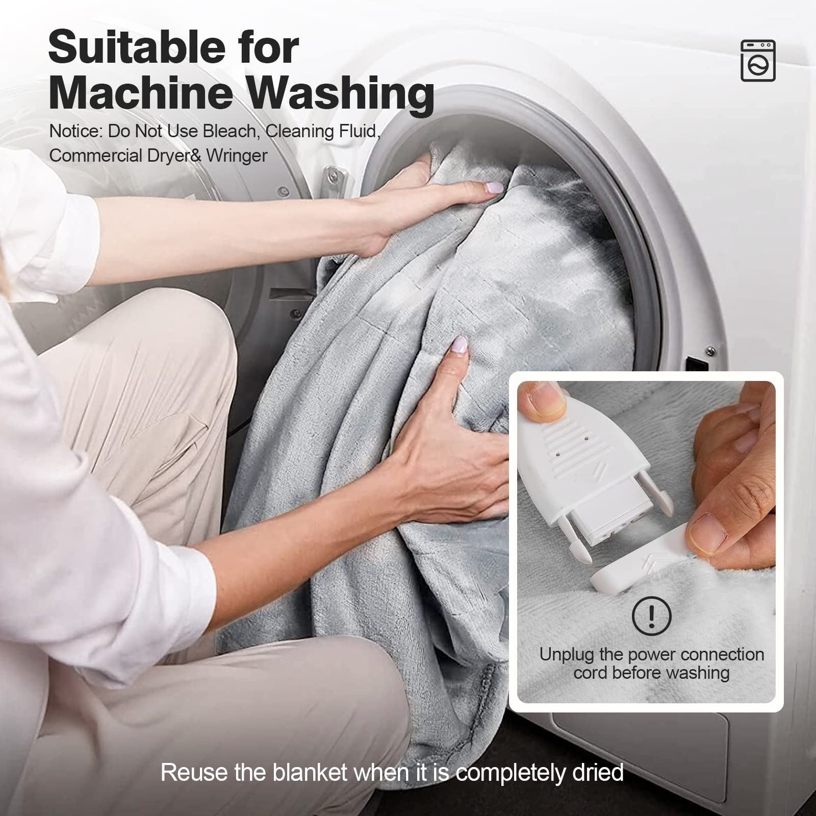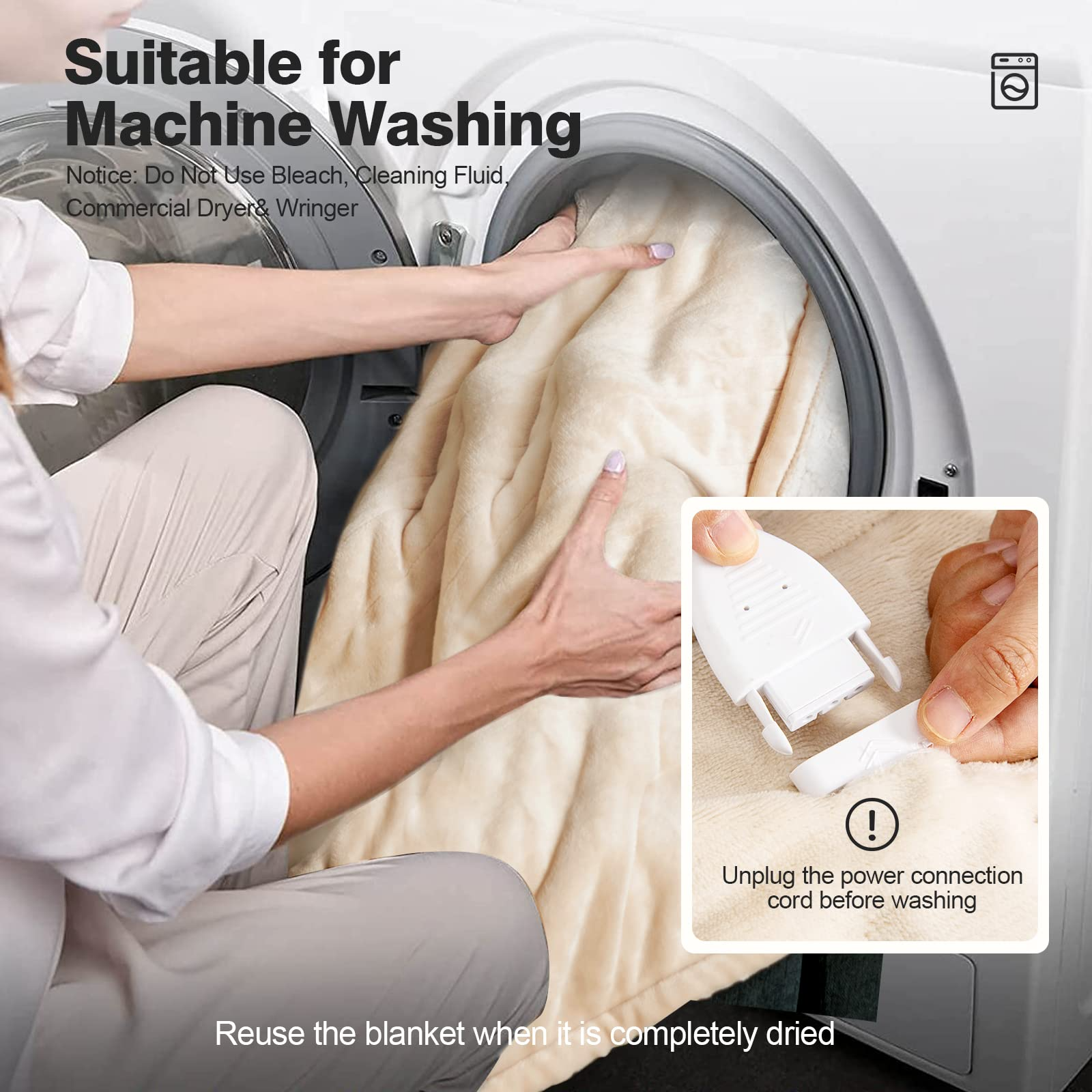 - Machine Washable & Easy Maintenance: Can be cleaned in a washing machine after removing the controller and plug cord.