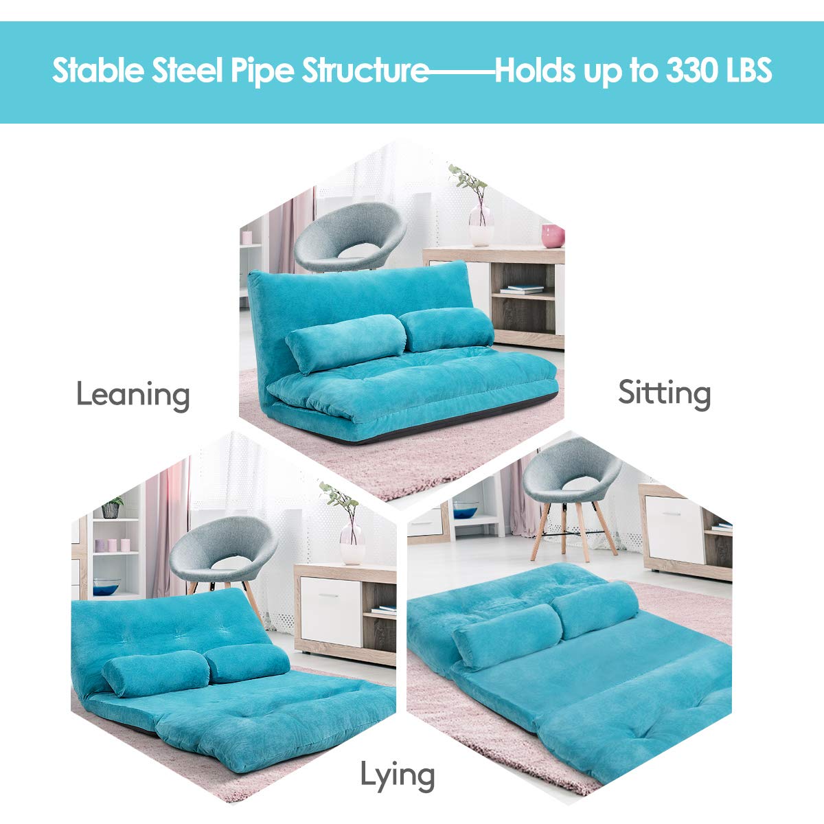 This convertible floor sofa is perfect for bedrooms, living rooms, reading rooms, or balconies. It can be used for reading, watching TV, playing video games, or taking a nap.