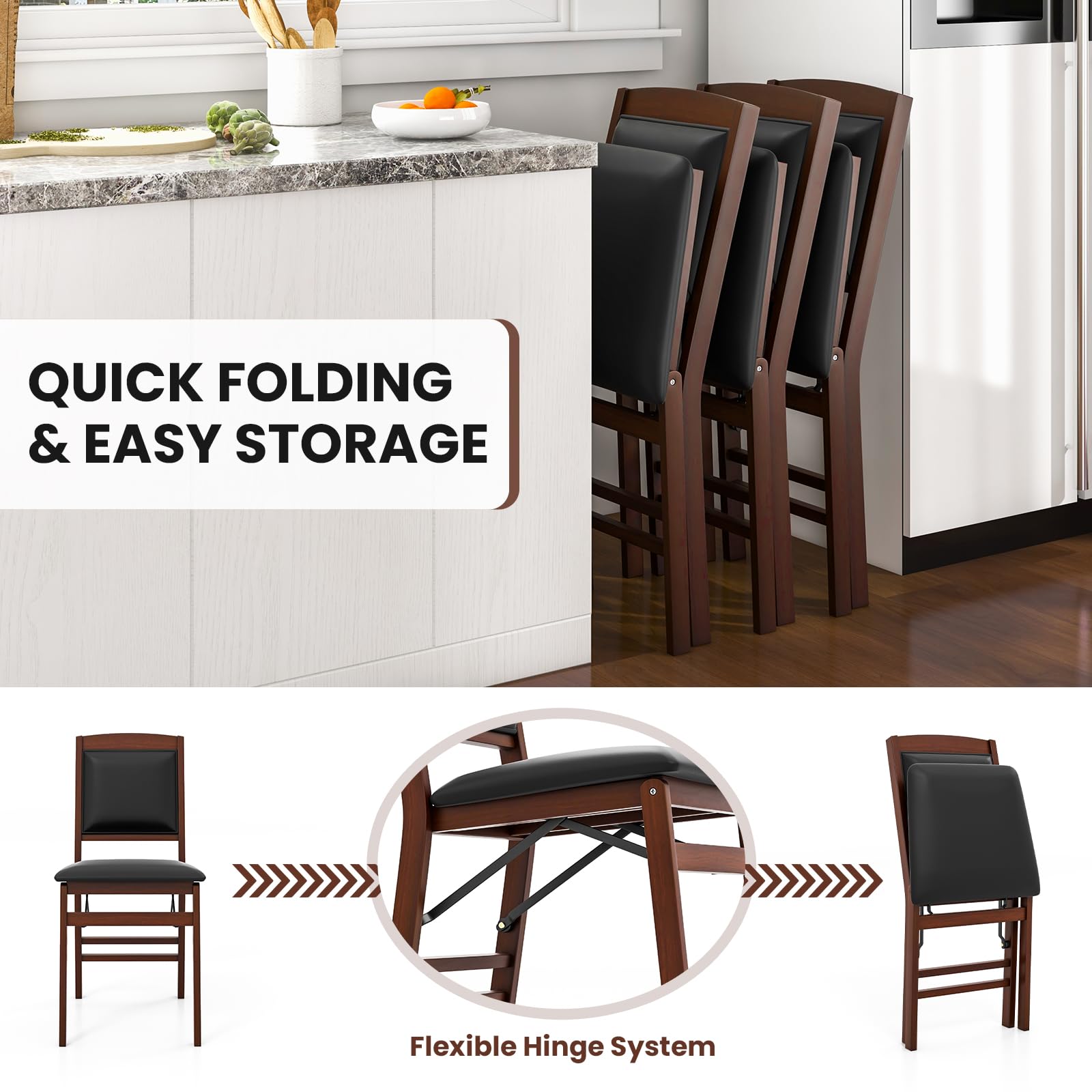 This is a set of folding dining chairs that combines traditional design with modern functionality. Ideal for both home and commercial use, these chairs offer a practical seating solution while saving space when not in use.