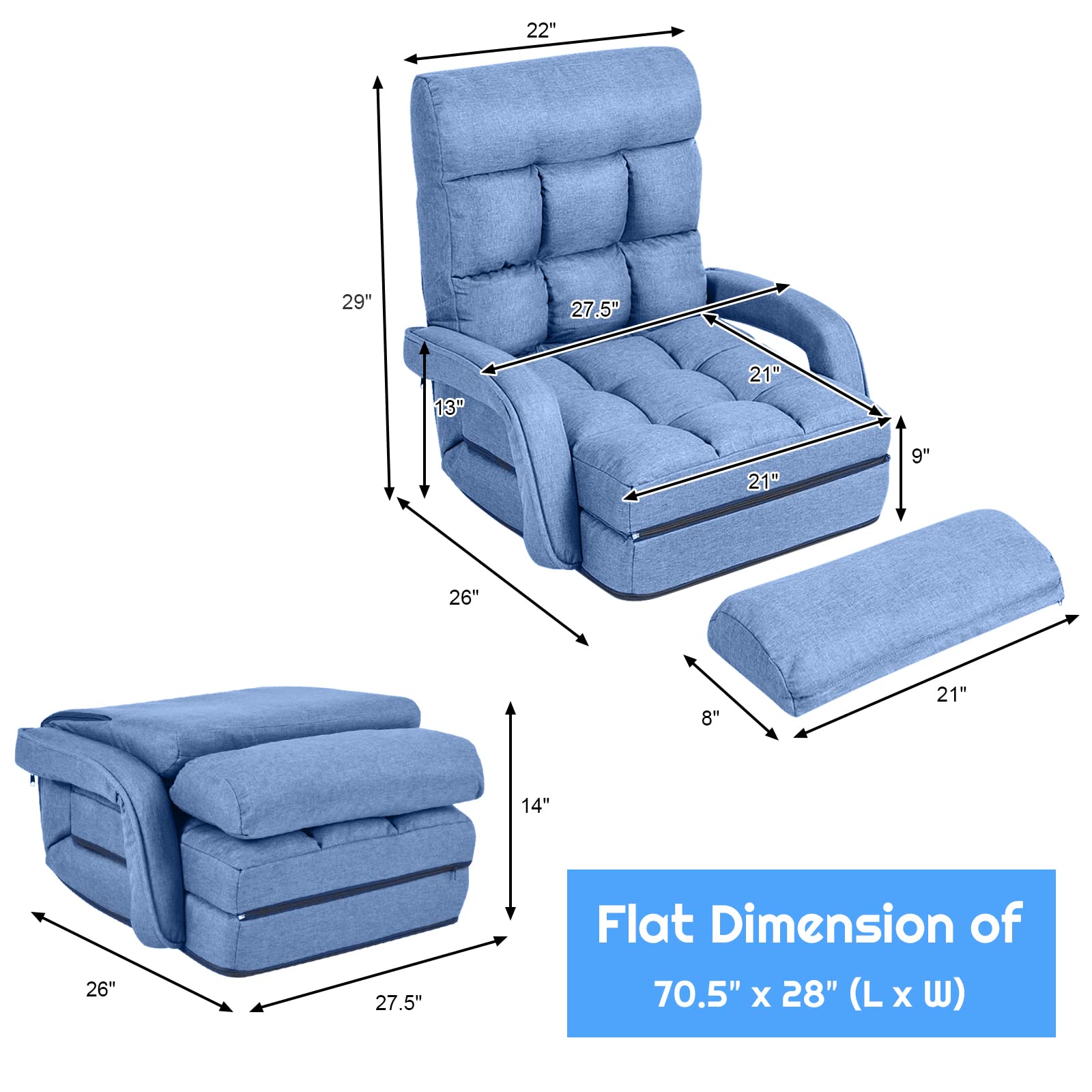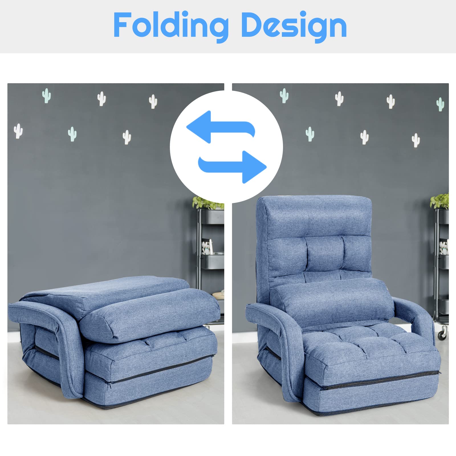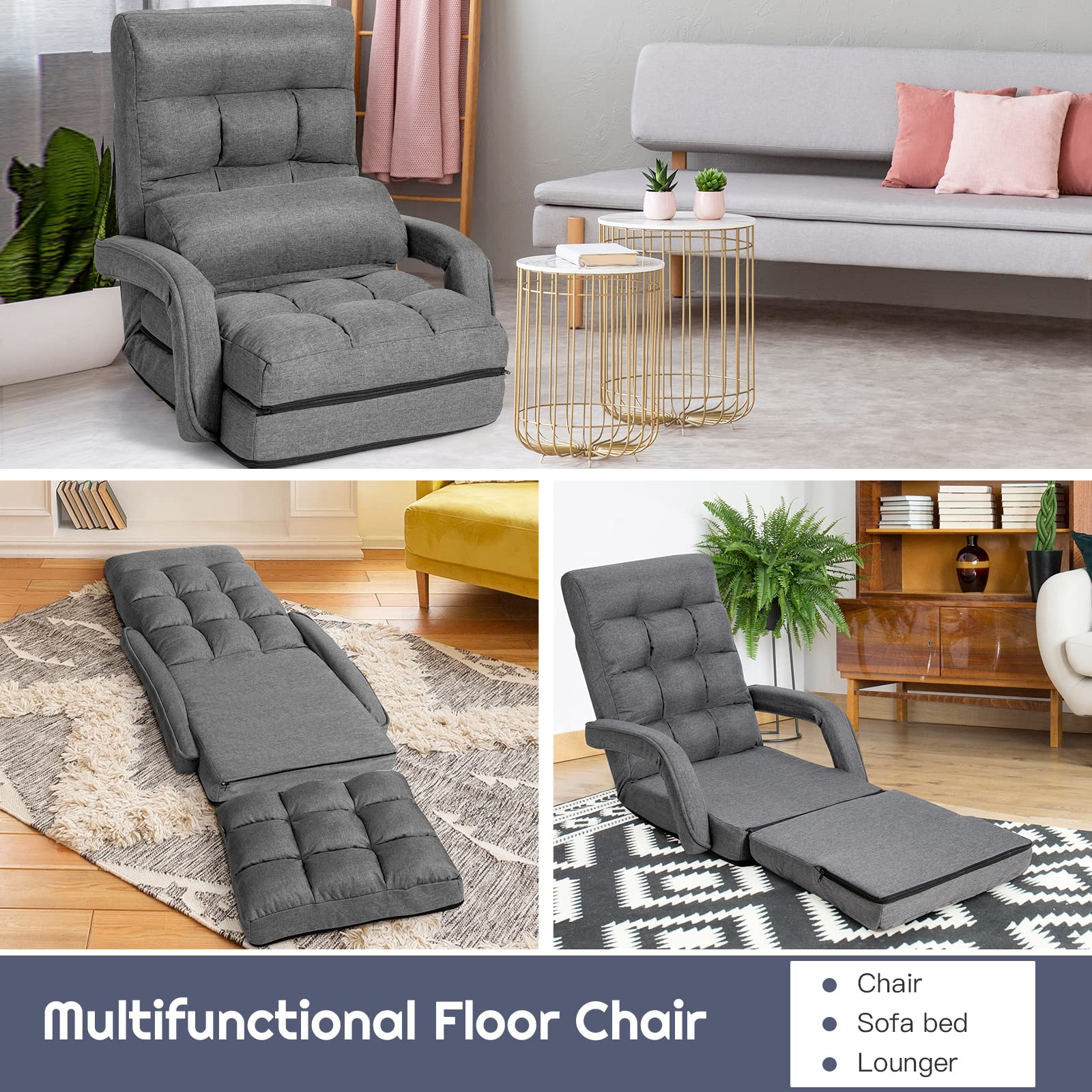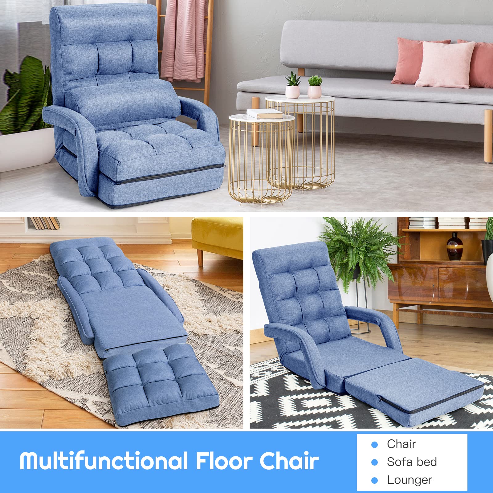 This multifunctional folding floor chair offers a versatile seating and relaxation solution. It can transform between a chair, sofa bed, and lounger, making it suitable for various activities and spaces.