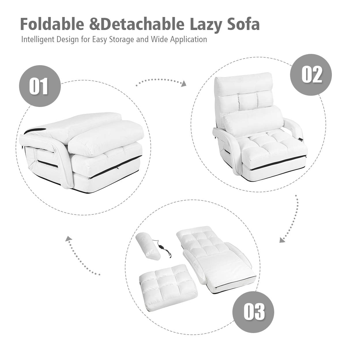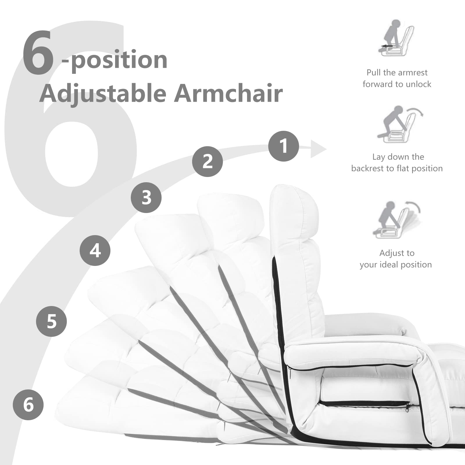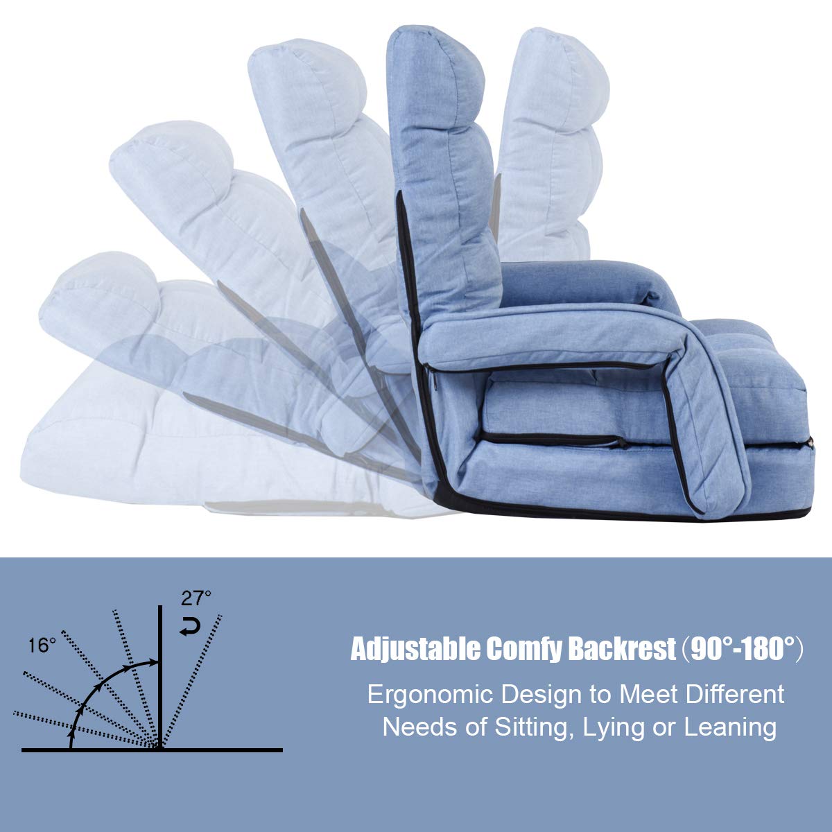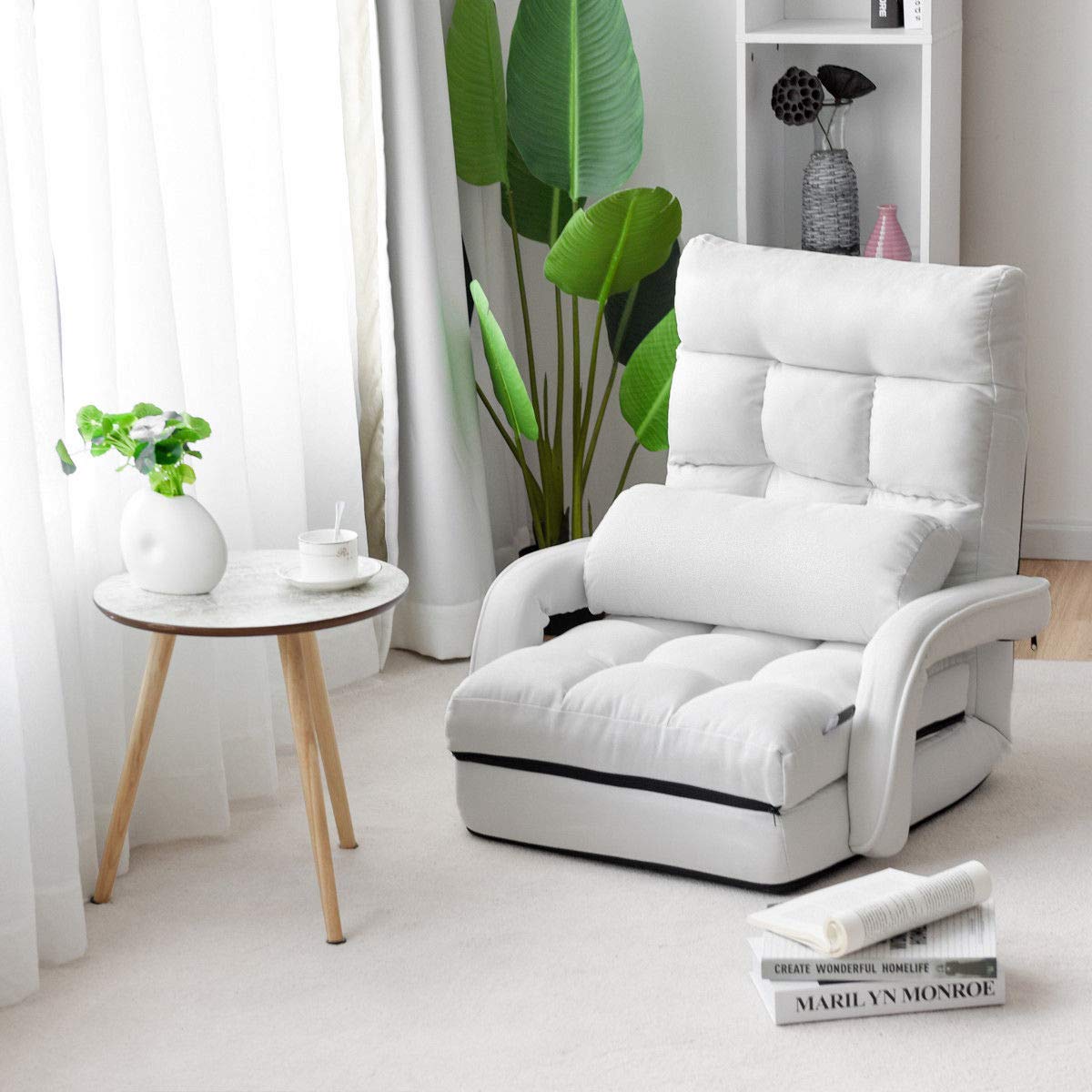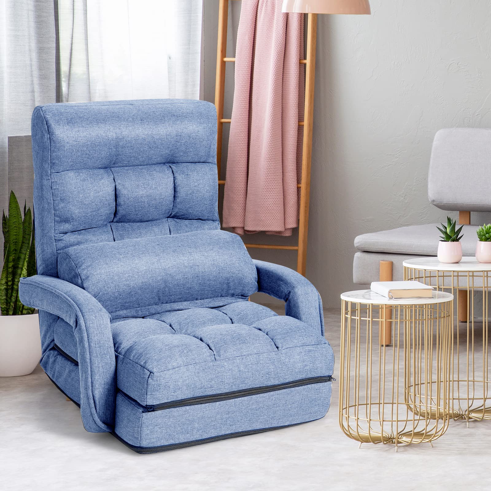 This multifunctional folding floor chair offers a versatile seating and relaxation solution. It can transform between a chair, sofa bed, and lounger, making it suitable for various activities and spaces.
