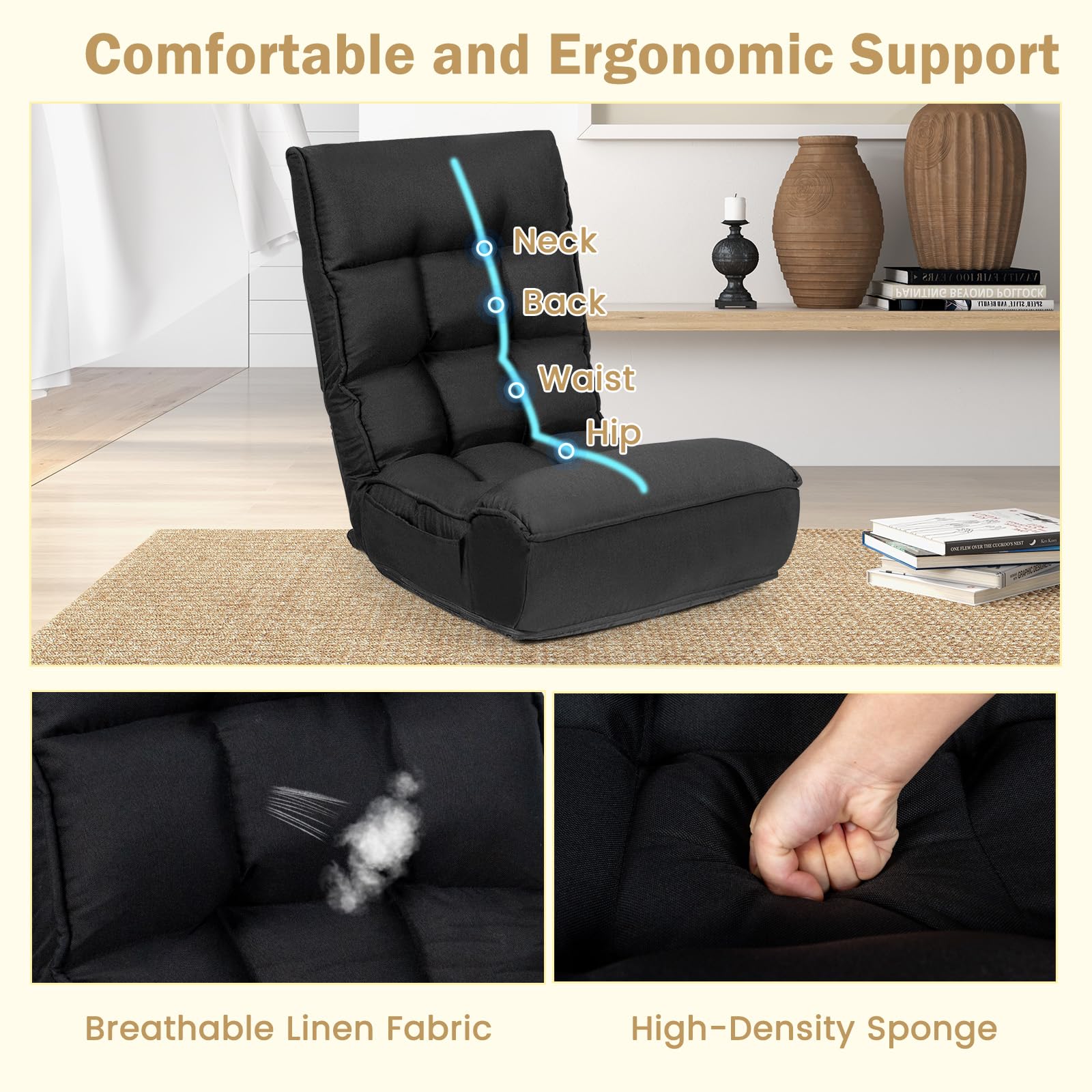 - Thick Sponge & Breathable Fabric: The seat and back are filled with high-elastic sponge, and the breathable linen cover provides a comfortable feeling.