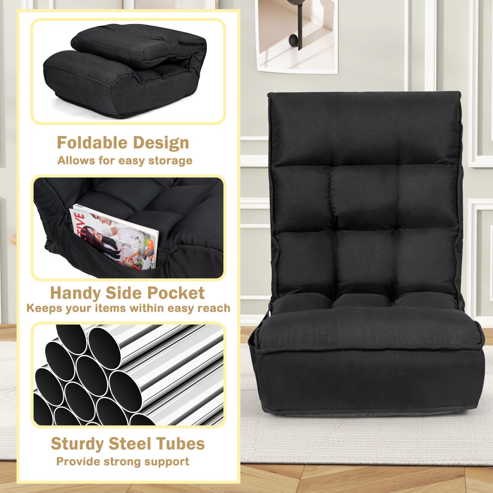 This chair is perfect for reading, watching TV, working, playing games, and napping in the living room, bedroom, balcony, or any other indoor space.