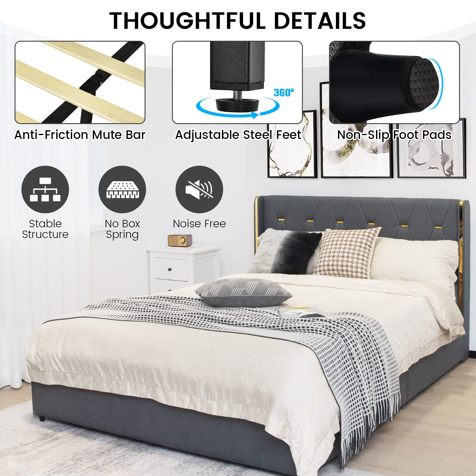 - Delicate Appearance & Easy Installation: The tufted headboard gives a lavish and elegant look. Installation is simple with hand – press slats.