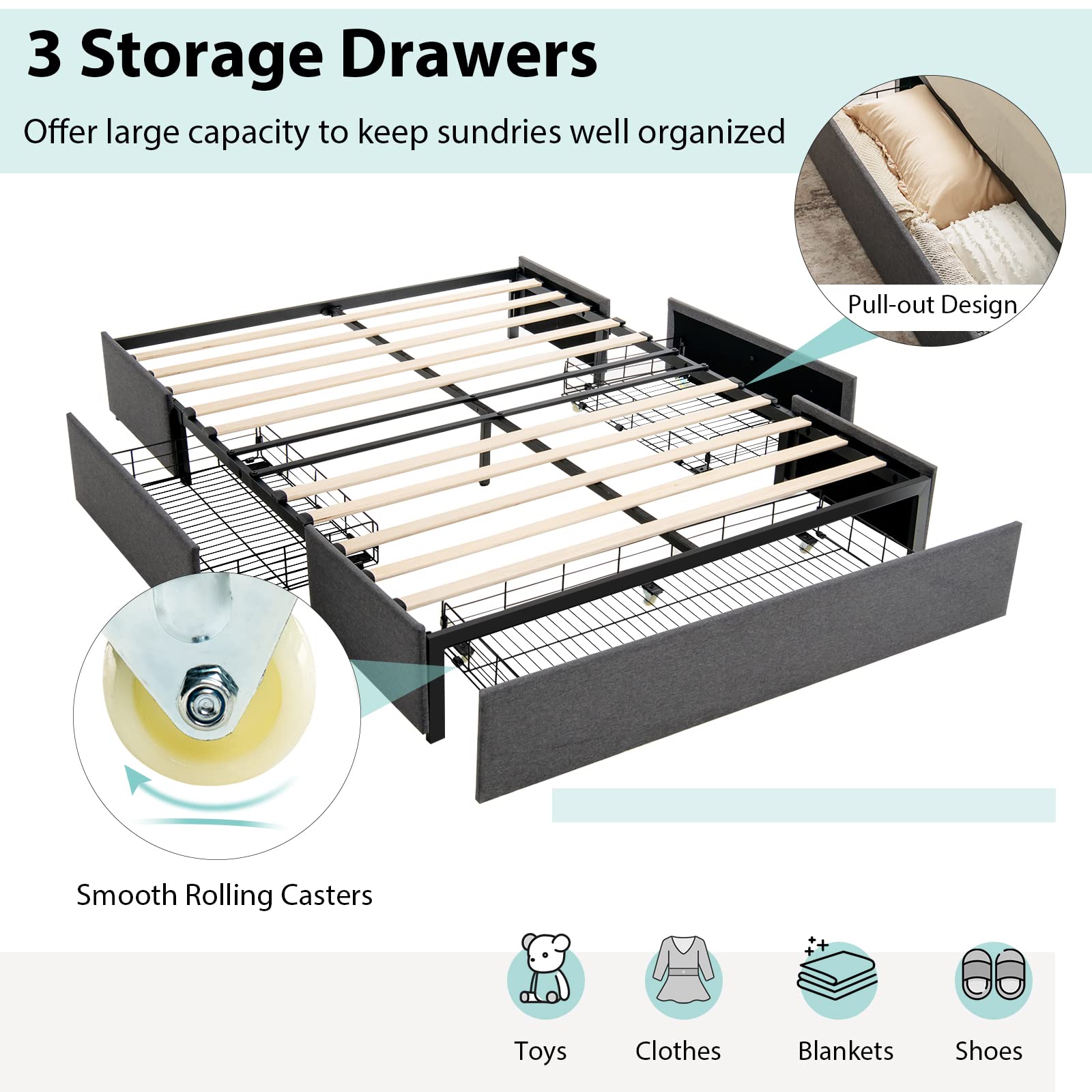 Bed Frame with Storage Drawers