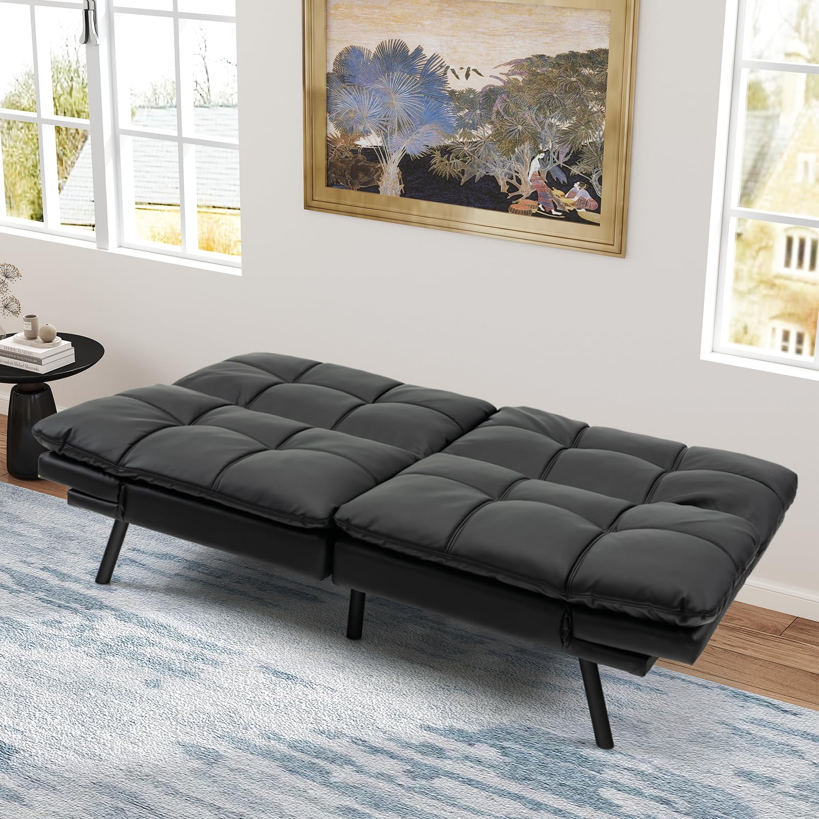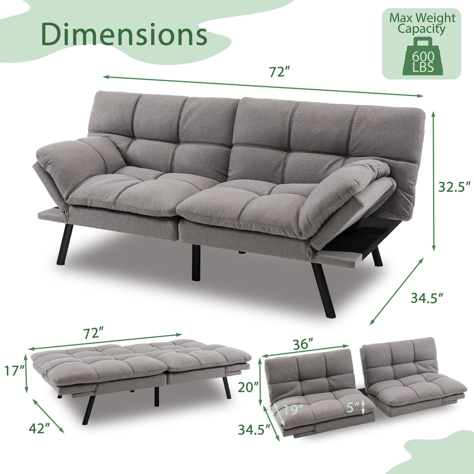 This convertible sofa bed is perfect for small living spaces, such as apartments, dorm rooms, or offices. It’s great for relaxing, entertaining guests, or taking a quick nap during the day.
