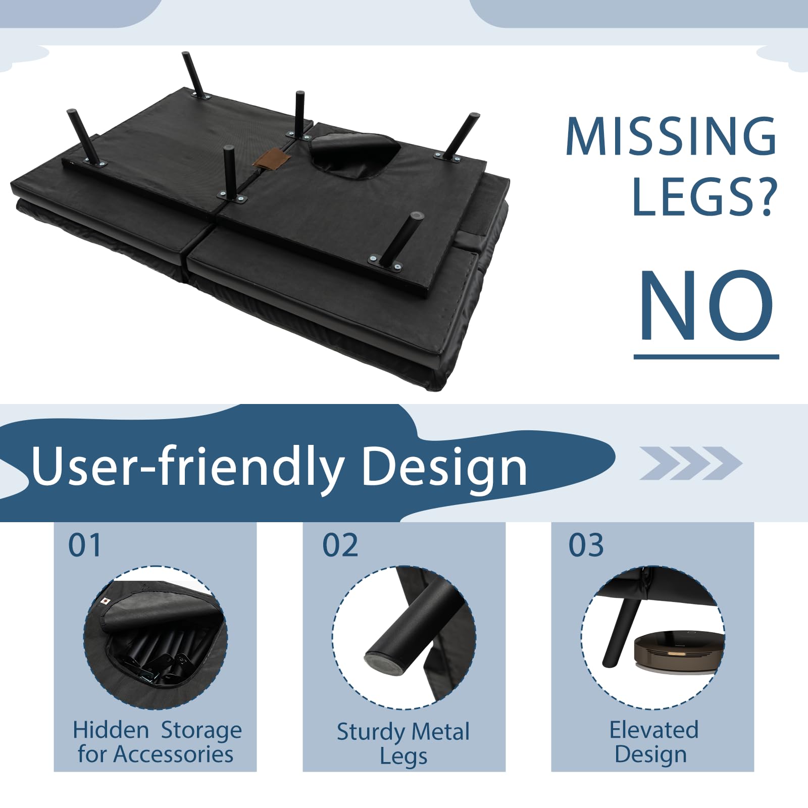 - Stable Construction: Equipped with 6 heavy – duty metal legs with a weight capacity of up to 600 lbs. Protective covers under the legs prevent sliding and floor scratches.
