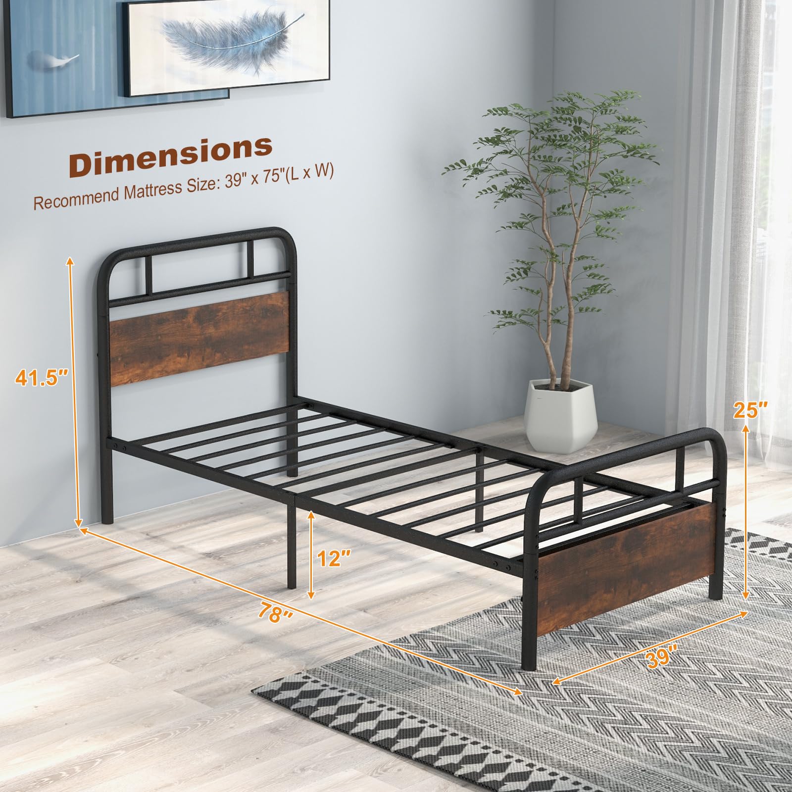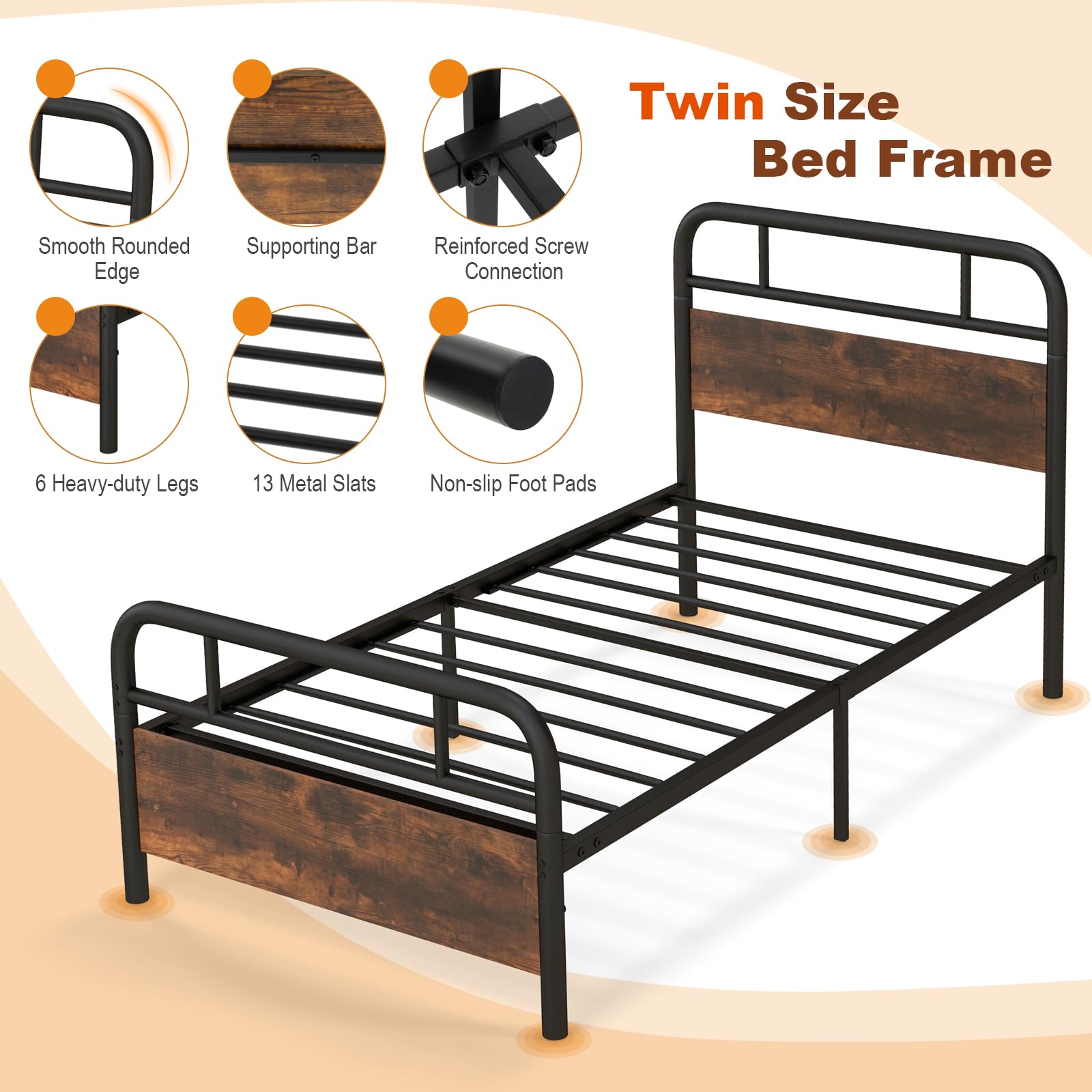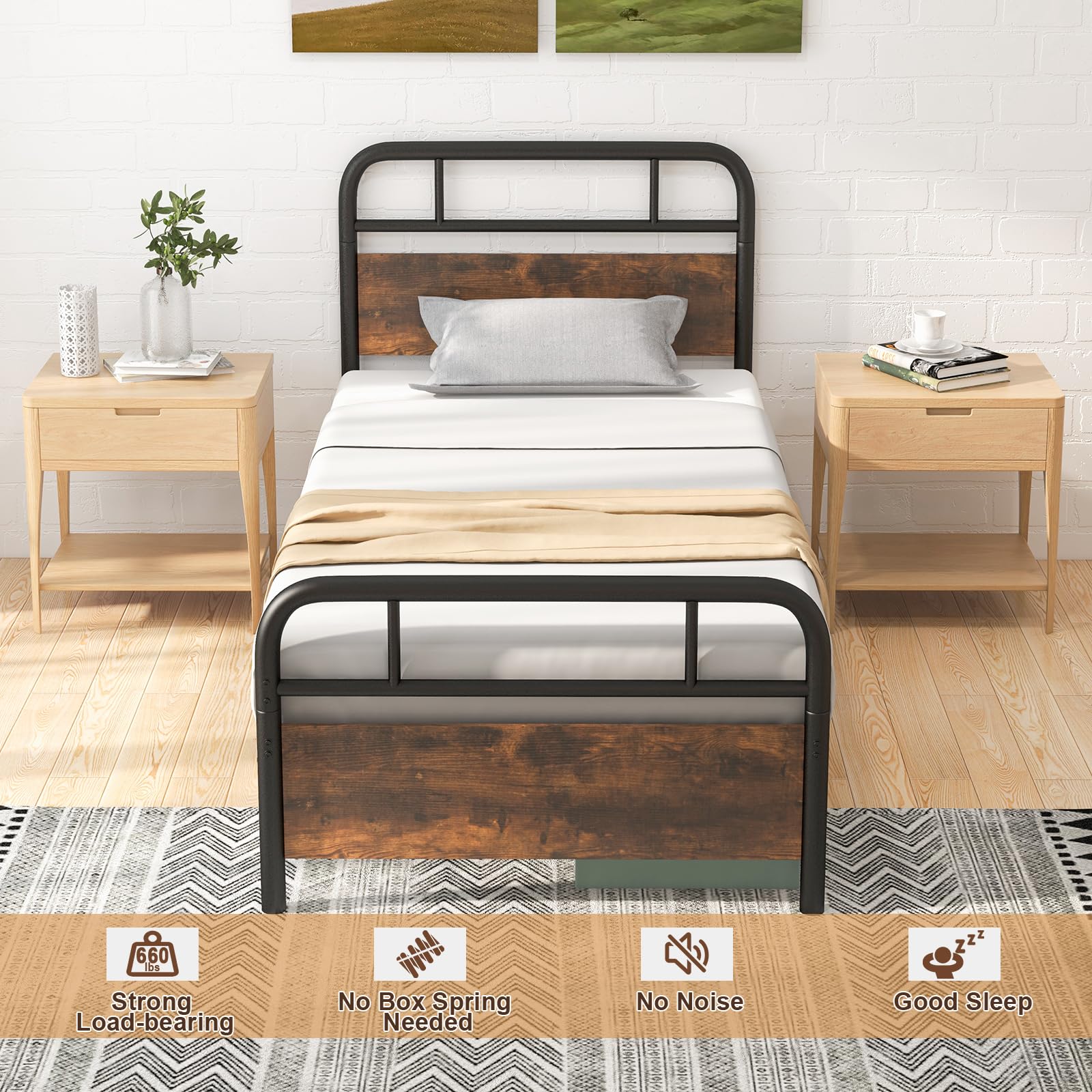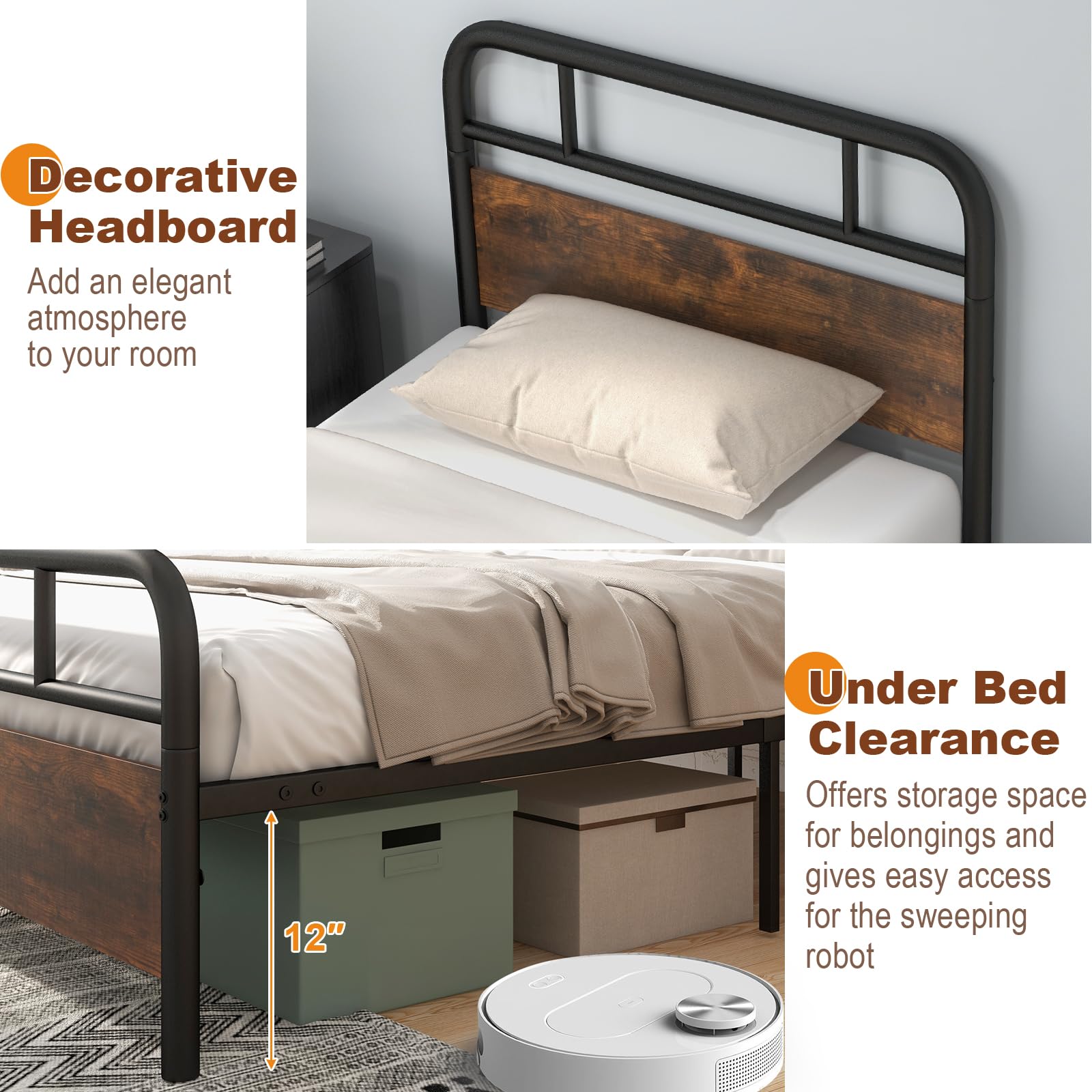 - Thoughtful & Safety Design: This industrial metal bed frame features non – scratch foot pads, protecting the floor from scratches while reducing noise. Additionally, the headboard and footboard boast sleek round corners to protect your family from accidental injuries.