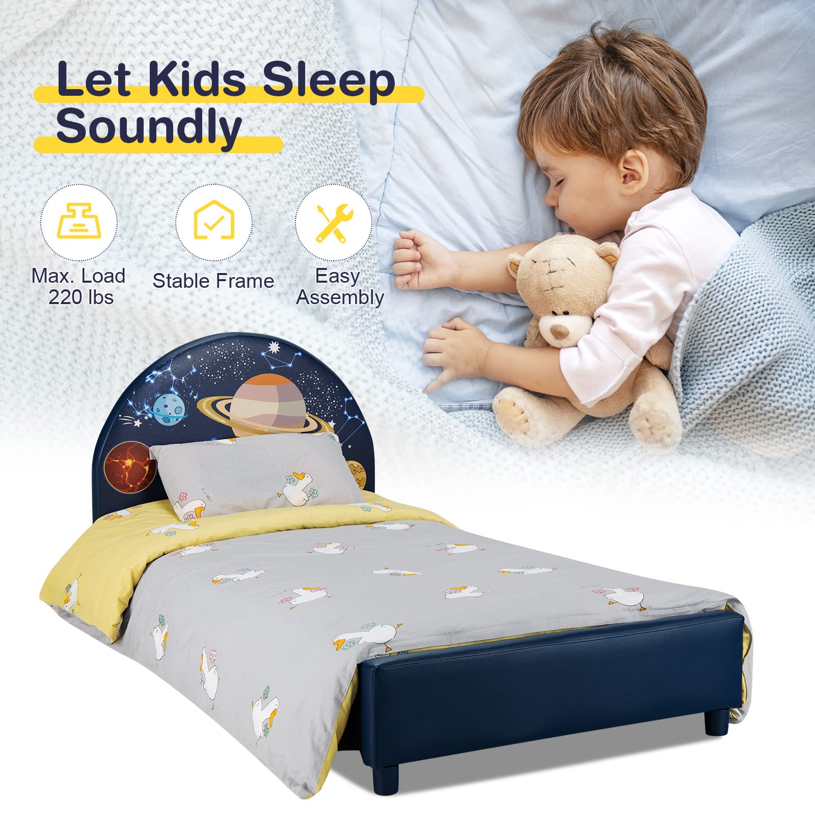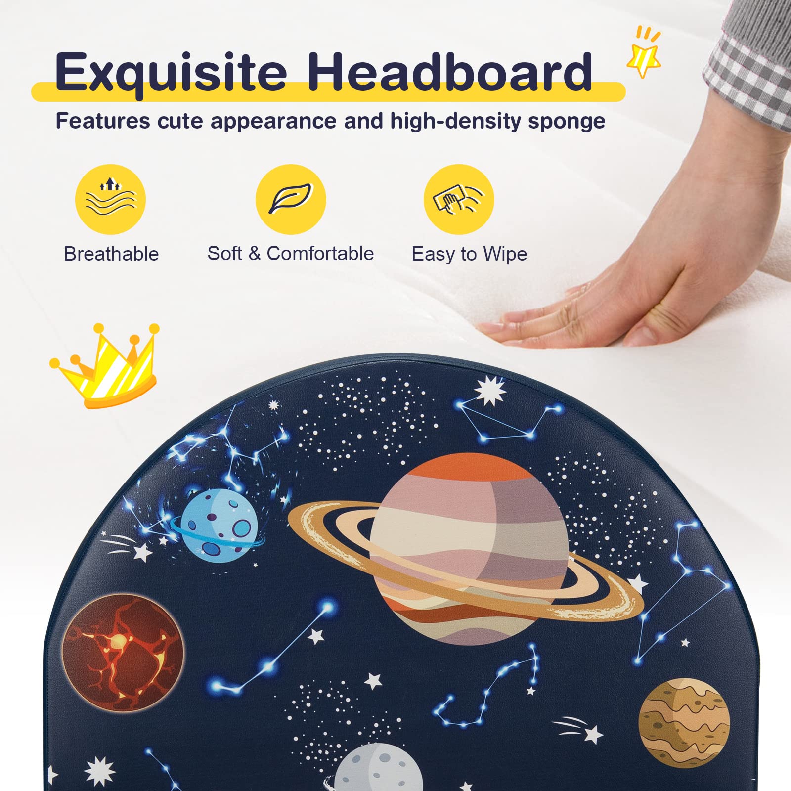 - Space-themed Design: The headboard and footboard feature planet graphics, adding a fun touch to the bedroom decor.