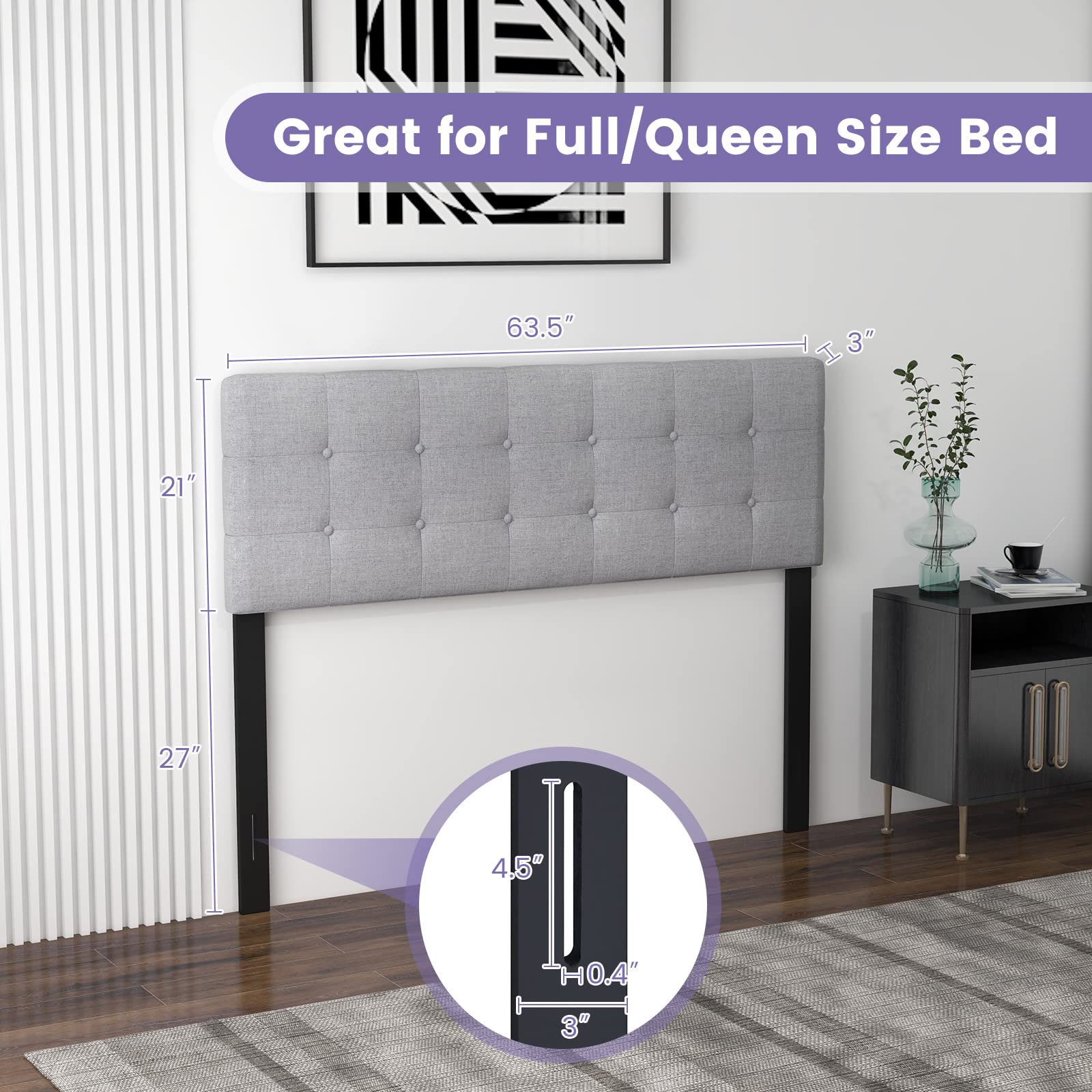 This headboard is perfect for anyone looking to upgrade the comfort and style of their full or queen – size bed. It suits various bedroom decor styles and provides a comfortable resting place.