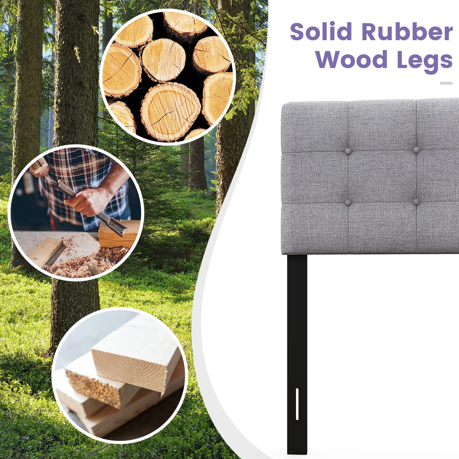 - Solid Wood Leg Support: Supported by solid rubber wood legs, it has a sturdy construction. The reserved slots make it easy to attach to your bed.