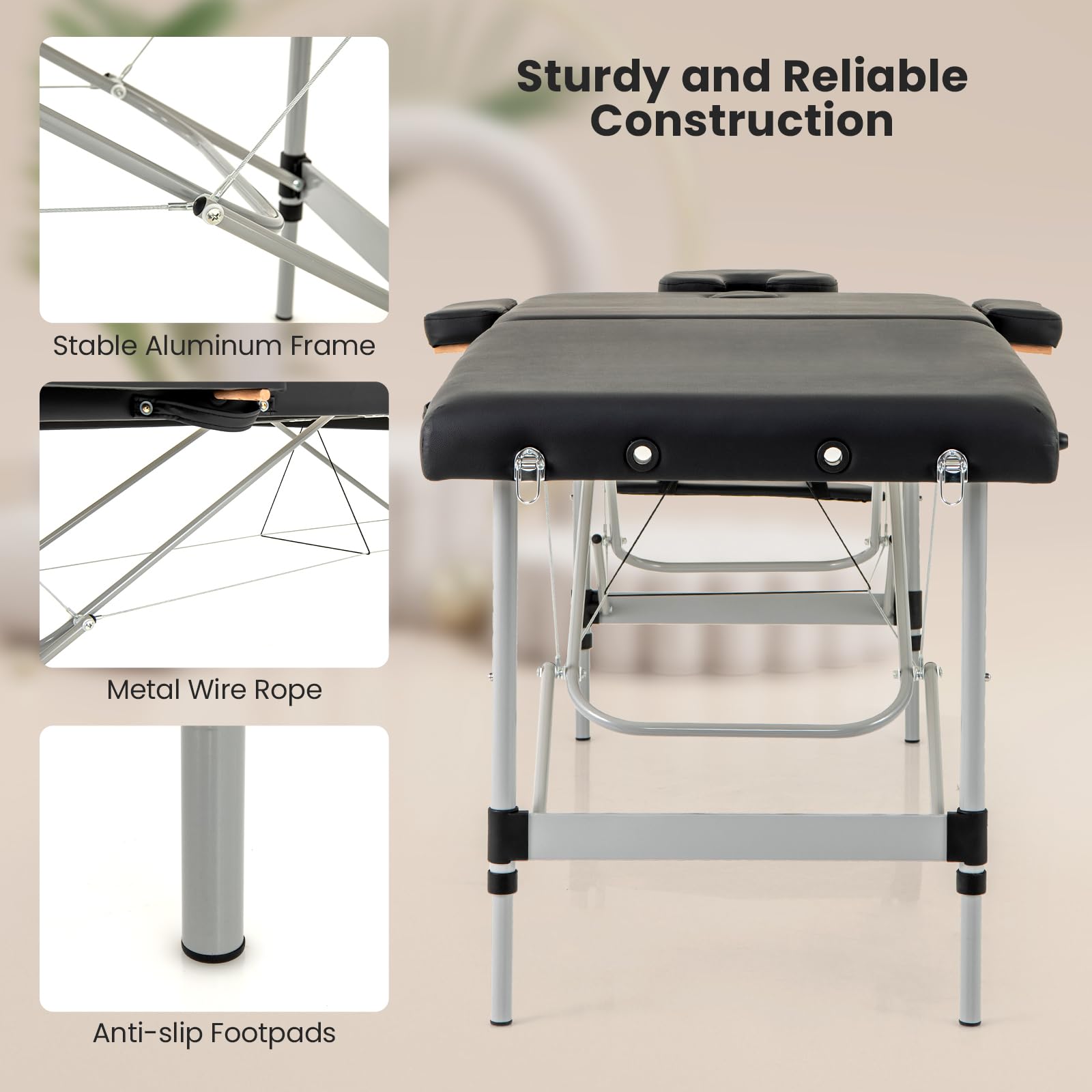 - Stable aluminum frame with metal wire rope support and anti – slip footpads
