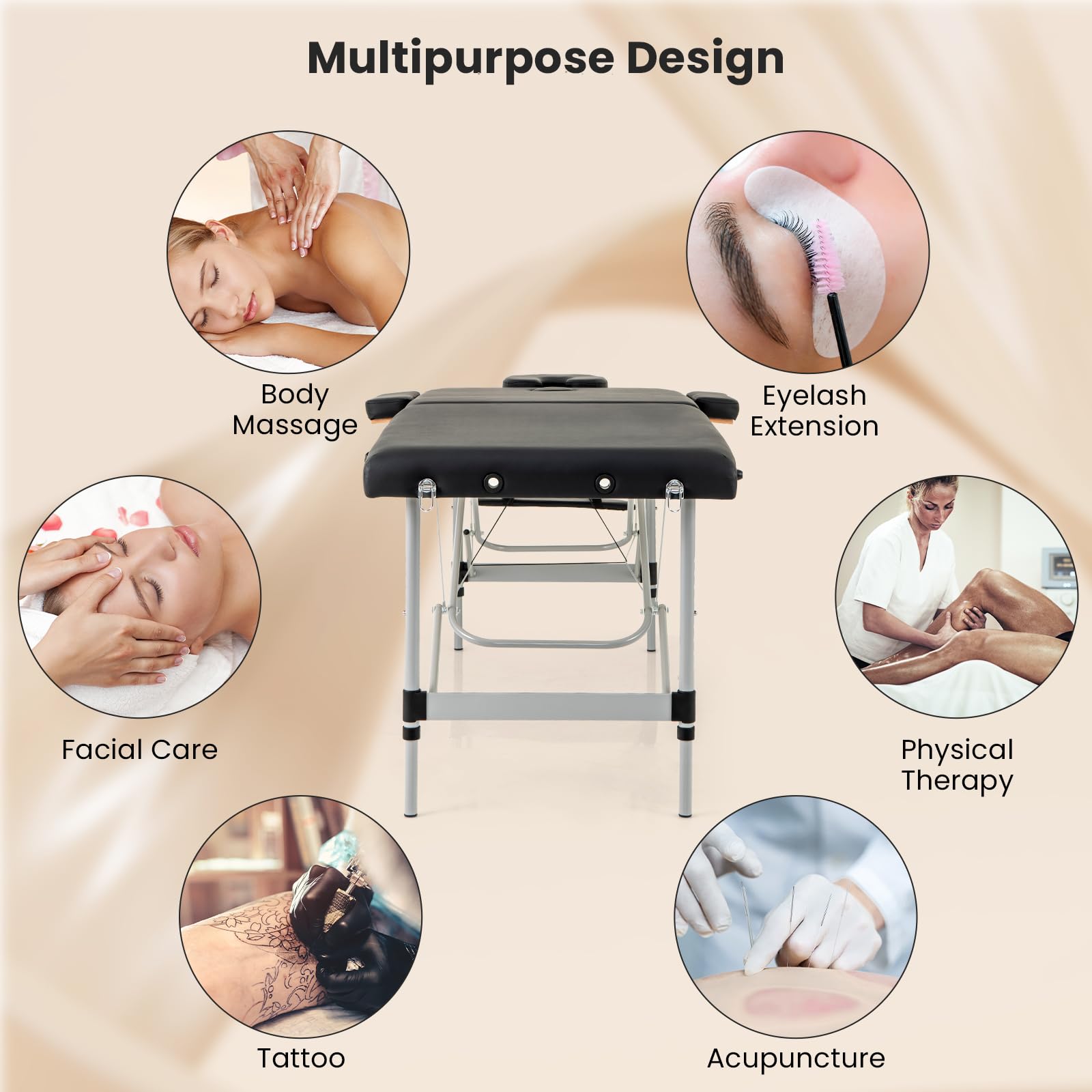 Full – body and back/neck massages, facial care, eyelash extension, physical therapy, tattooing, and acupuncture. Suitable for professional spas, clinics, or at – home therapy.