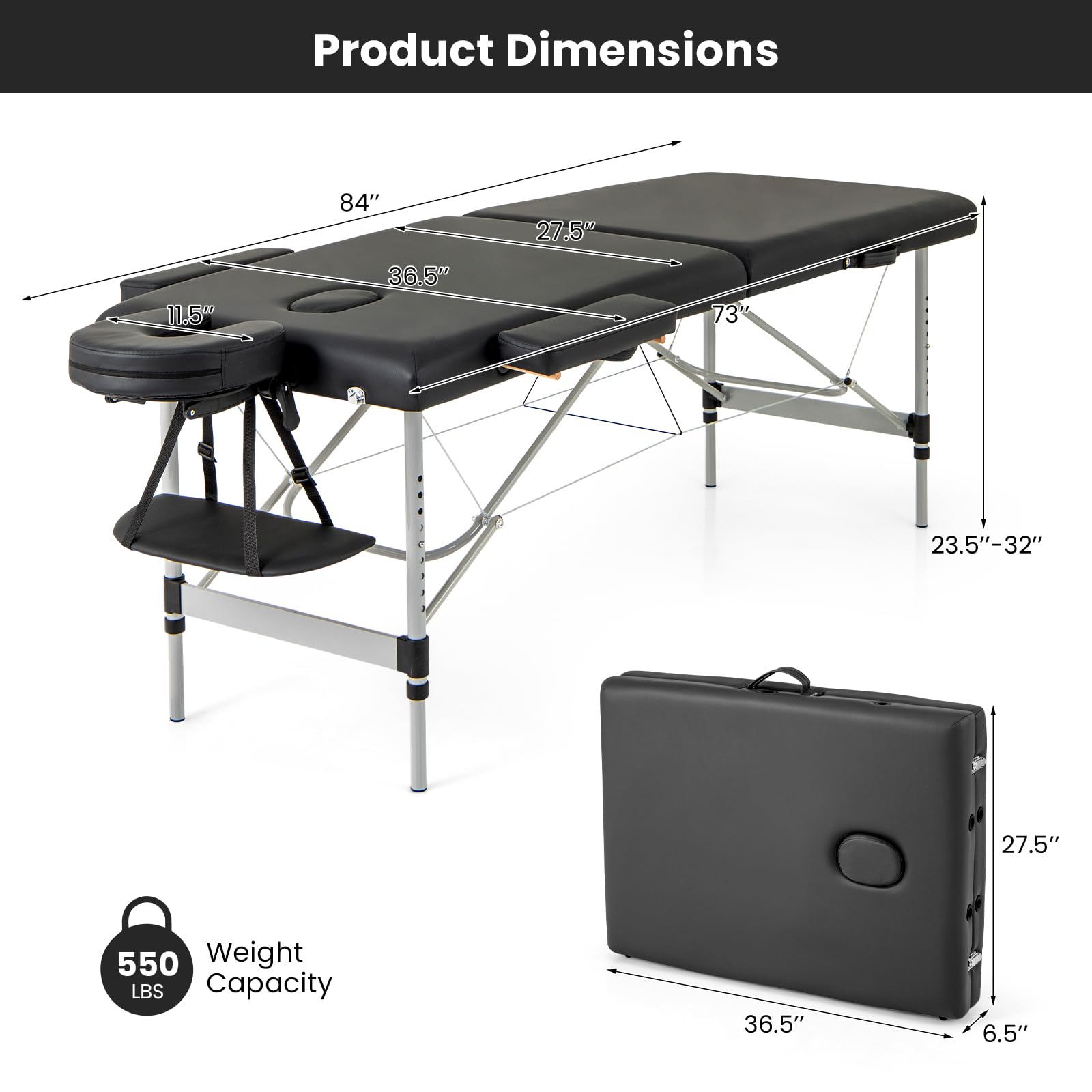 - Central breathable hole in the tabletop for face – down comfort