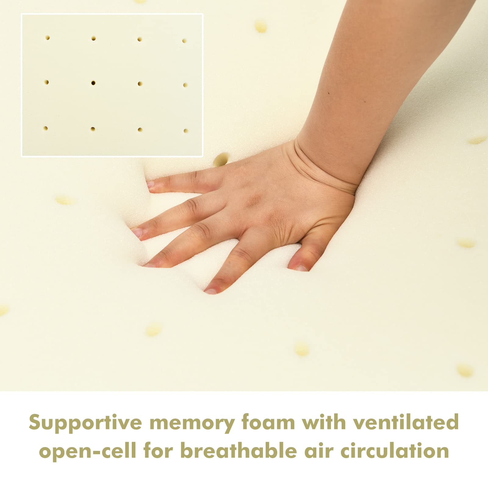This memory foam mattress topper is a great addition to any firm or medium – firm mattress. It softens the surface while providing excellent support, making your sleep more comfortable. The neutral color and simple design make it suitable for various bedroom styles.