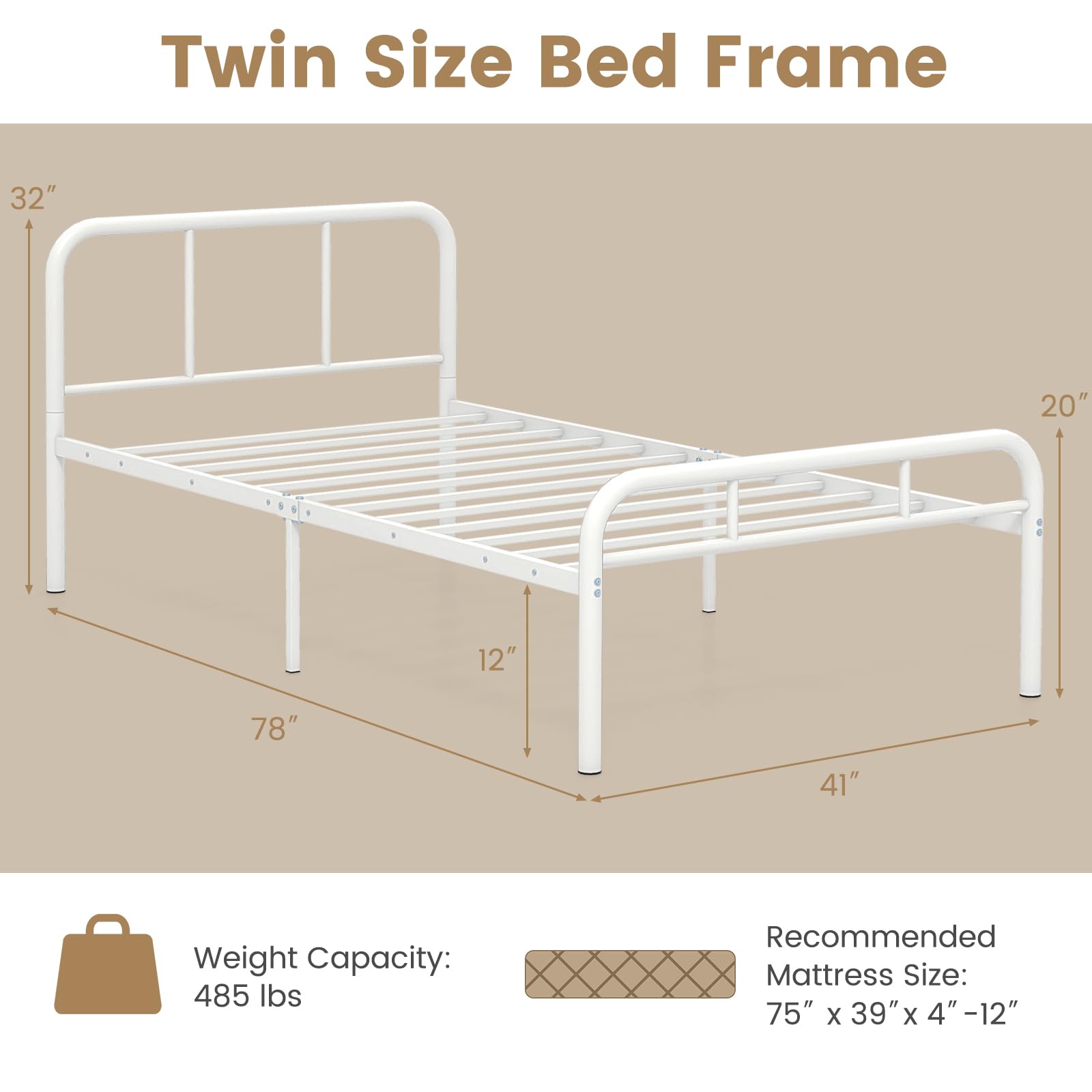 | Twin Size Recommended Mattress Size | 75″ x 39″ x 4″ – 12″ (L x W x T) |