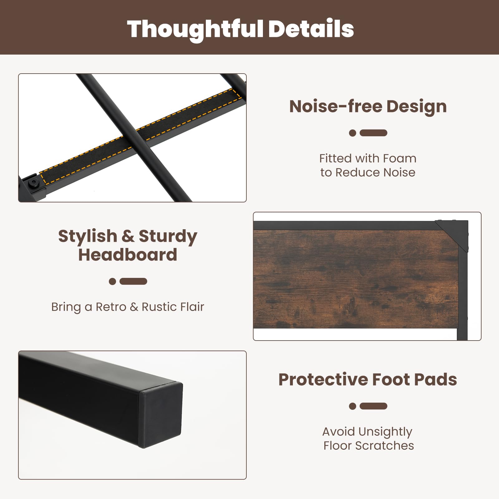 - Headboard: Rustic headboard with warm wood grain enhances the overall appeal