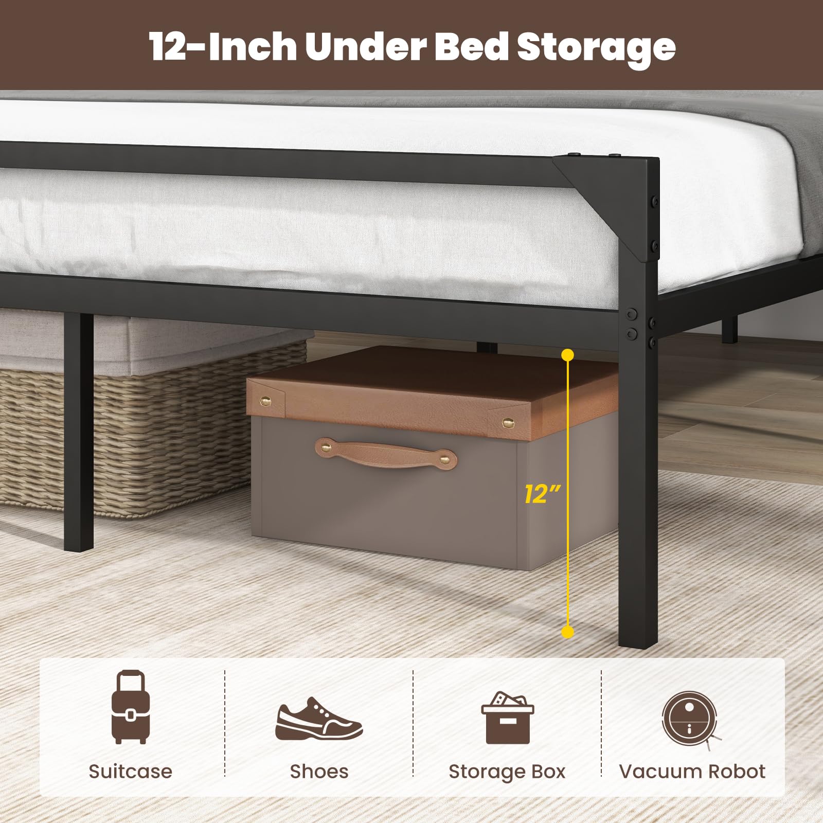 - Storage: 12” under bed space adds to bedroom storage