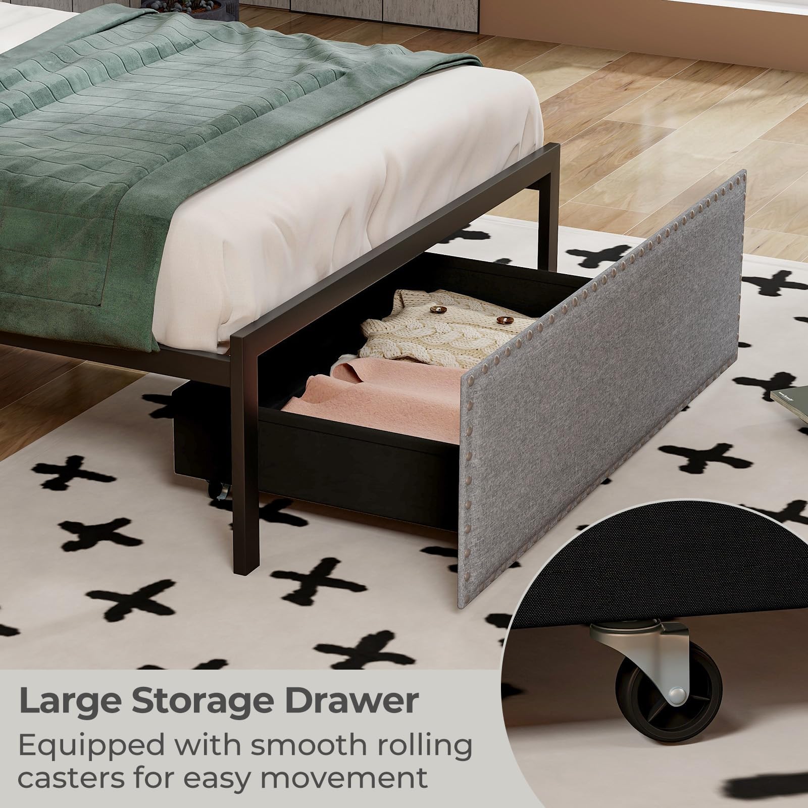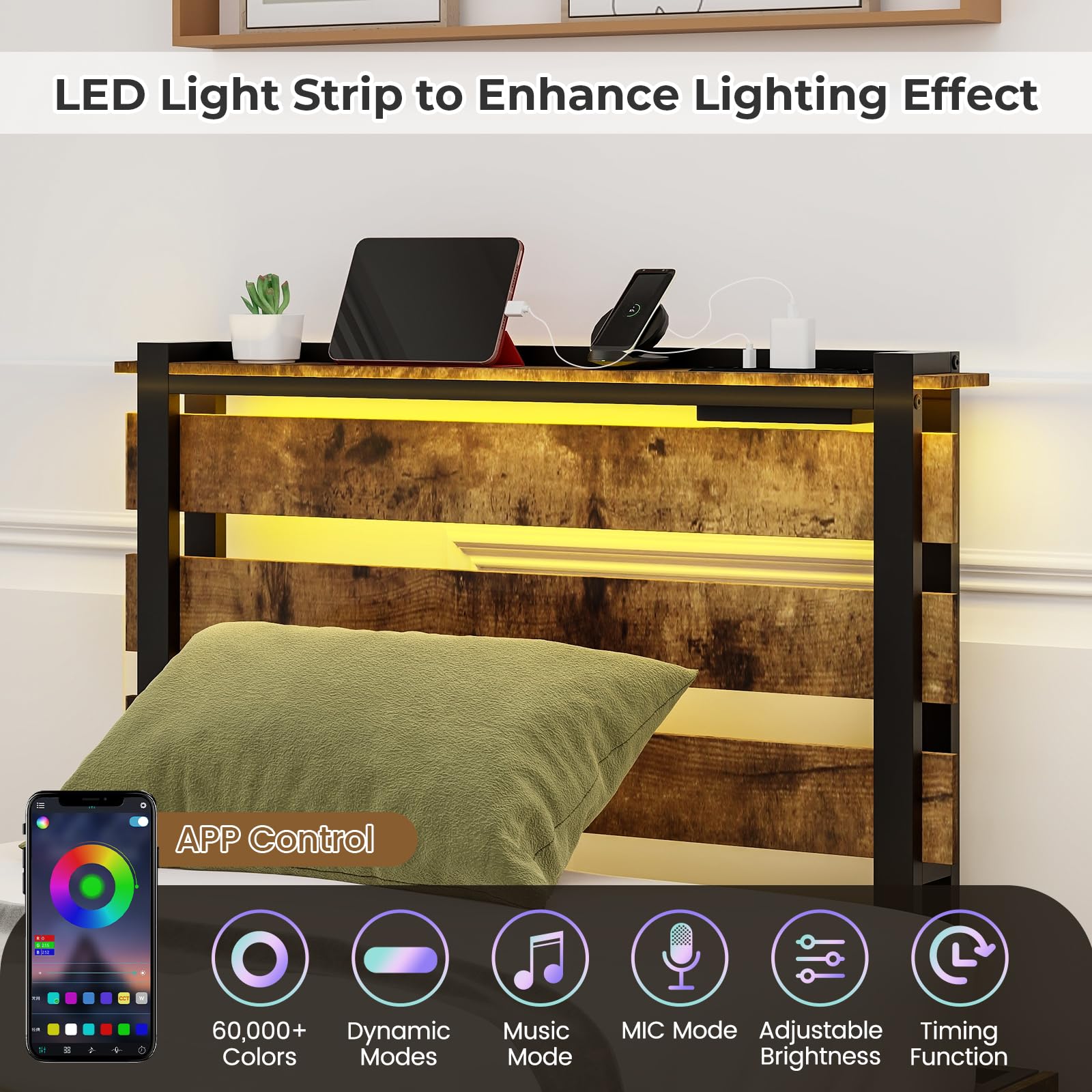 Platform Bed Frame with Storage and LED Lighting