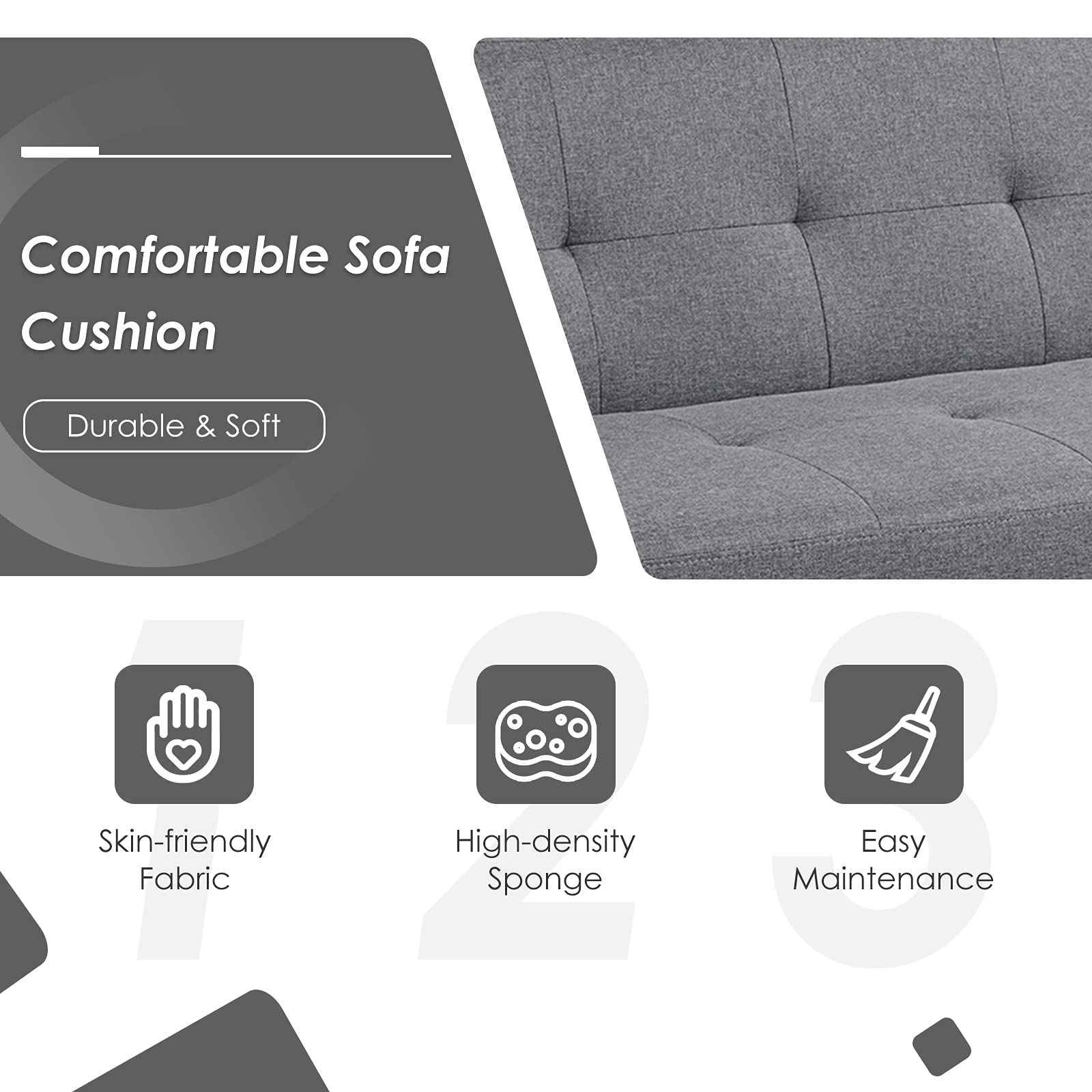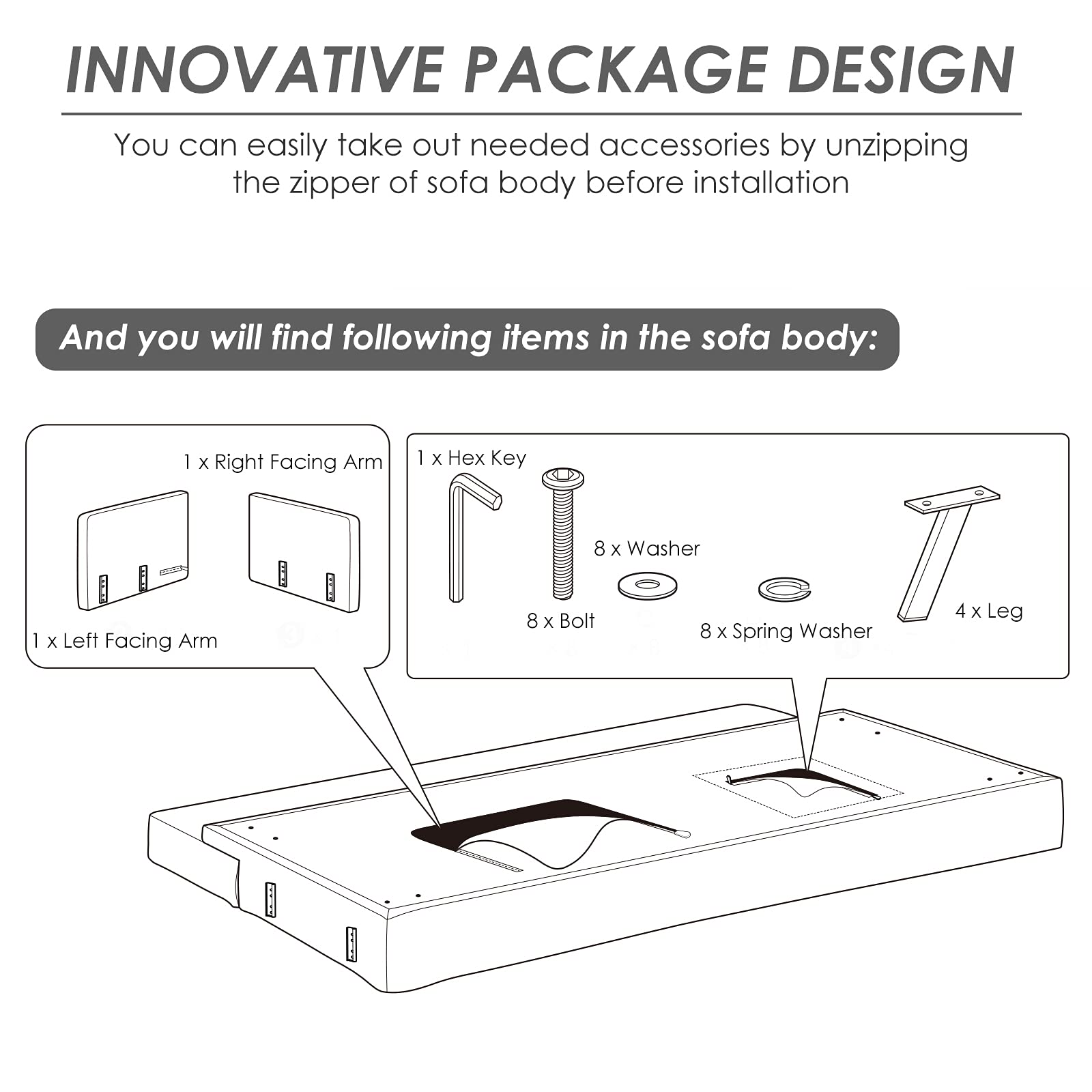 - Simple Assembly: All parts are included in the sofa body, and the assembly is easy to complete in a short time.