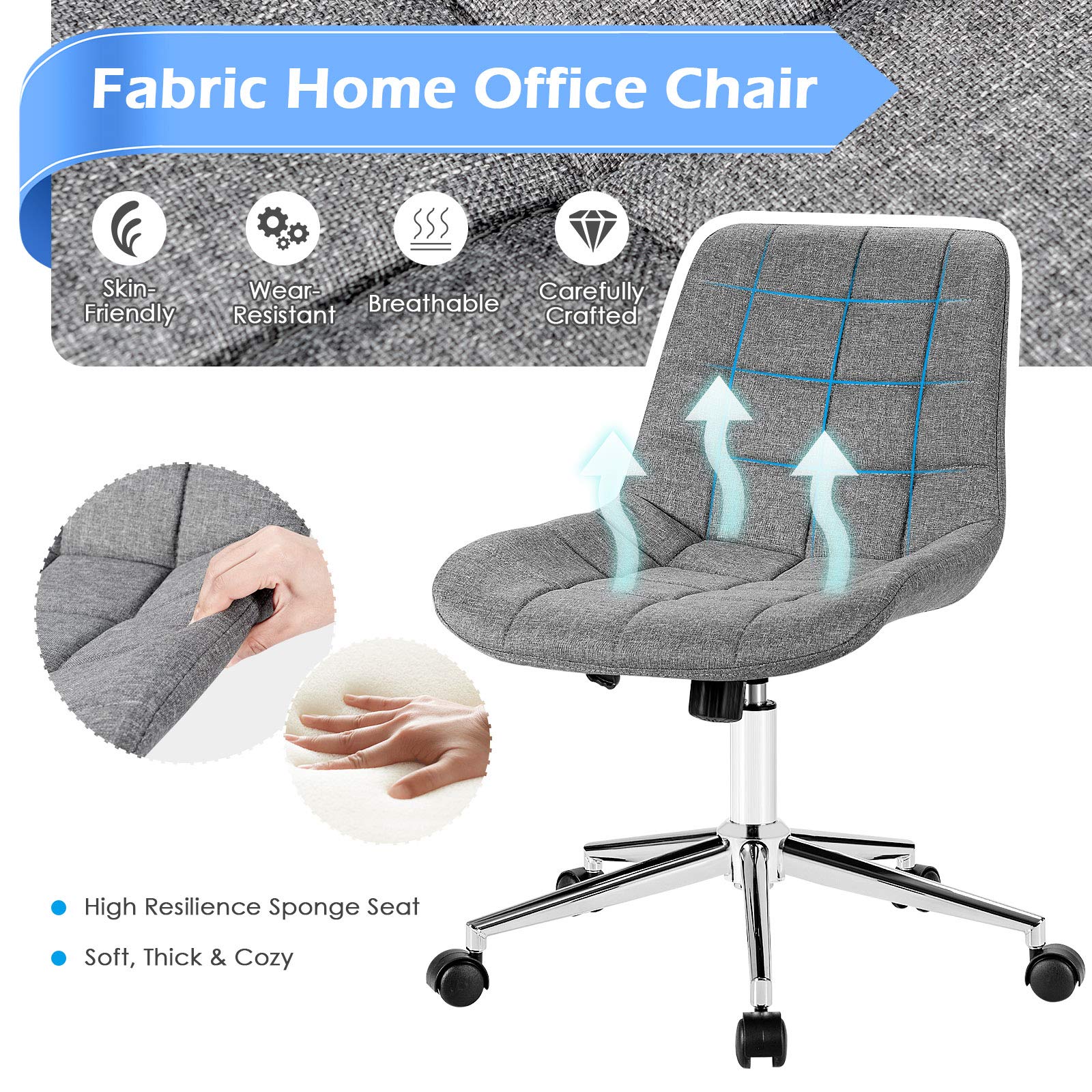 - Premium Material for Perfect Usage: Sturdy metal base and heavy – duty casters with a 300lbs load capacity. Filled with high – elastic sponge and upholstered with breathable fabric, it’s skin – friendly and comfortable for long – time sitting.