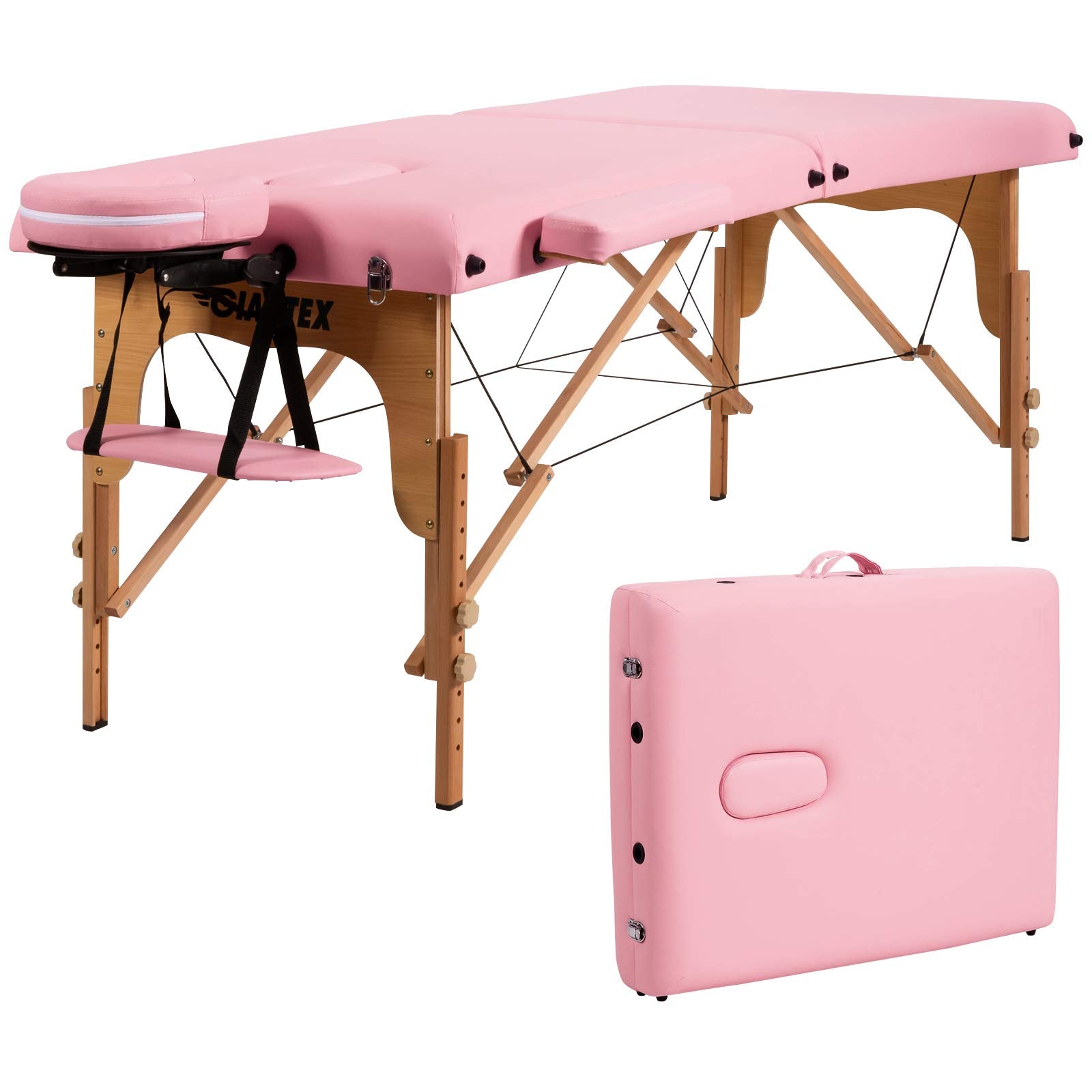 This portable massage table is a great option for both professional and home use. It comes with a folding frame and padded surfaces, and is accompanied by a carrying case for easy transport and storage.