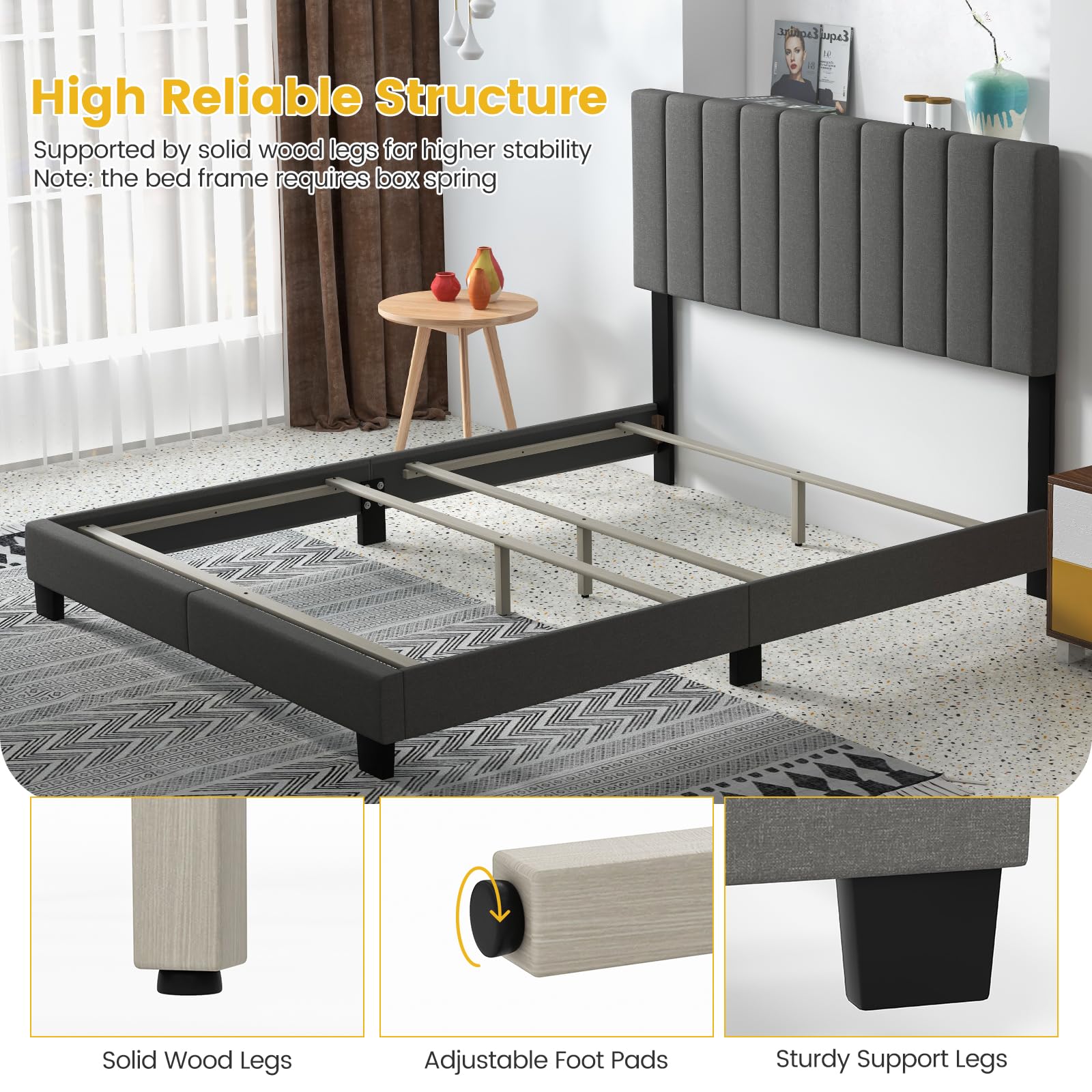 - Quick & Intuitive Assembly: The bed frame includes all parts and a detailed instruction to simplify the assembly process.