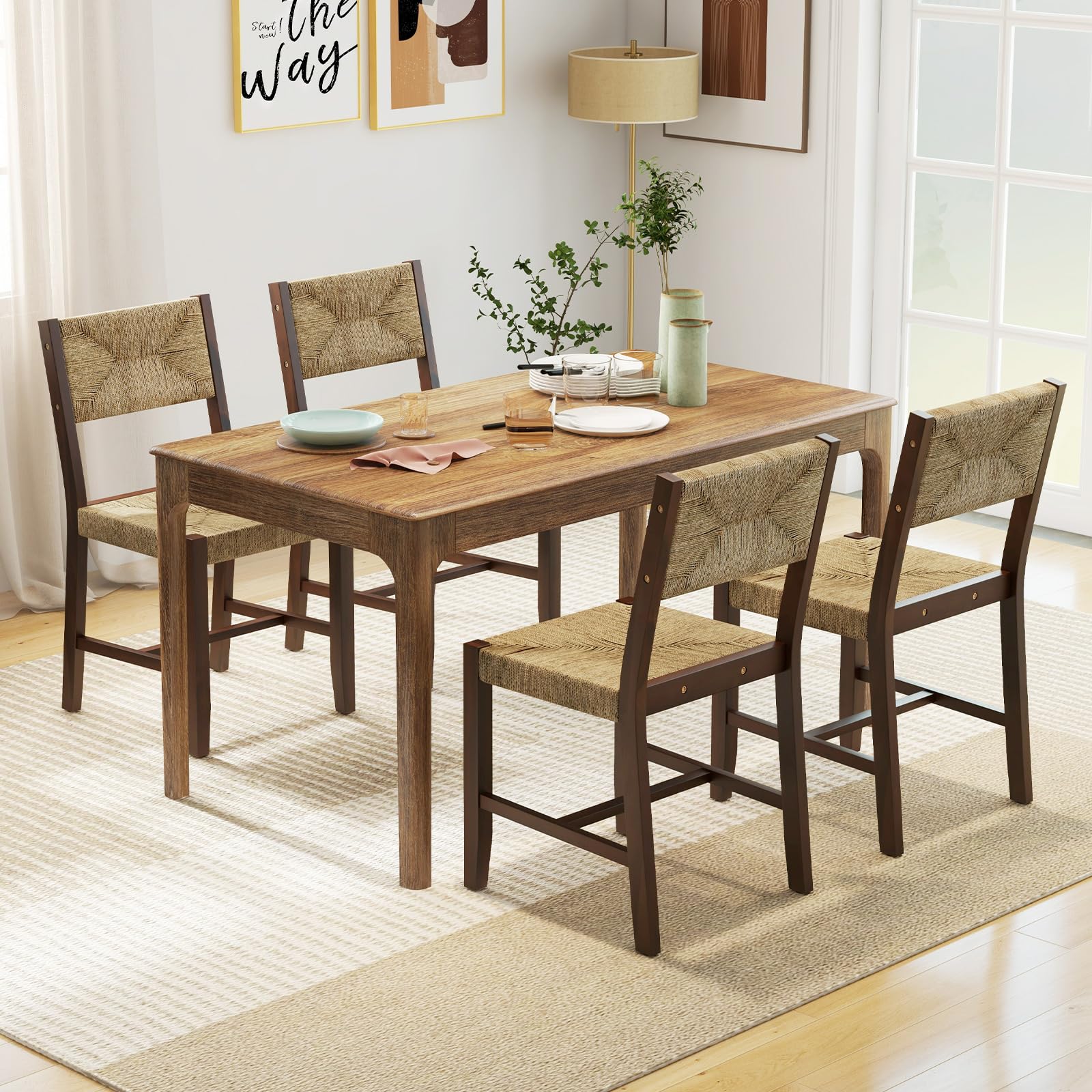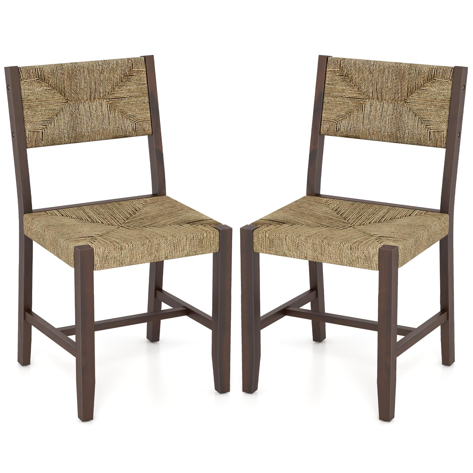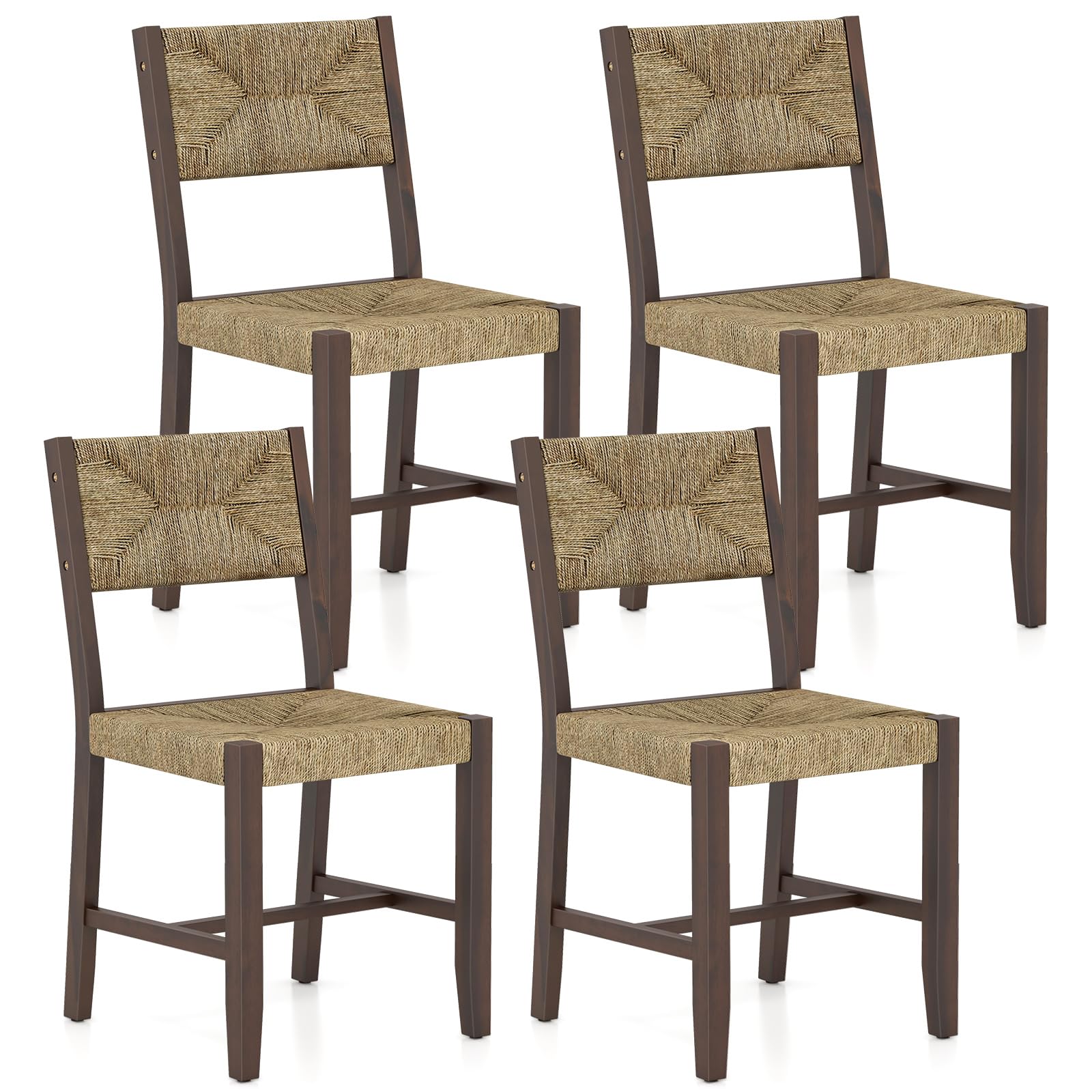 This is a set of dining chairs that are both stylish and functional. With a woven natural – fiber seat and backrest paired with a sturdy wooden frame, they bring a rustic charm to any space. The set is available in packages of 2 or 4 chairs.