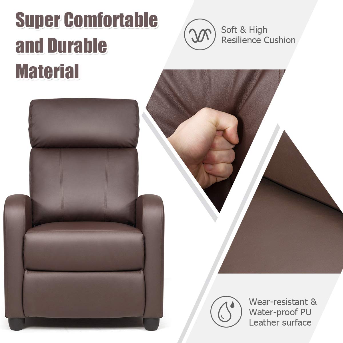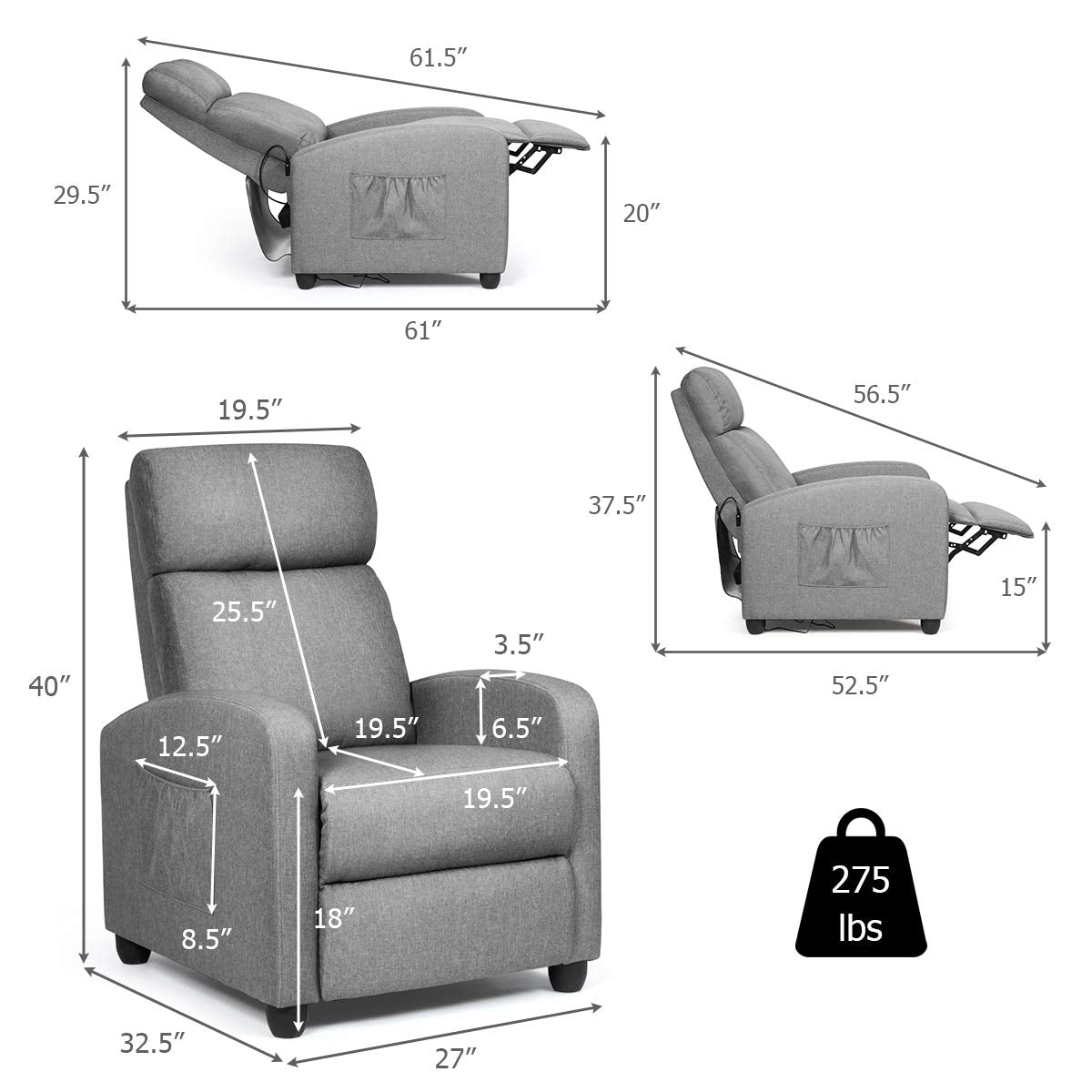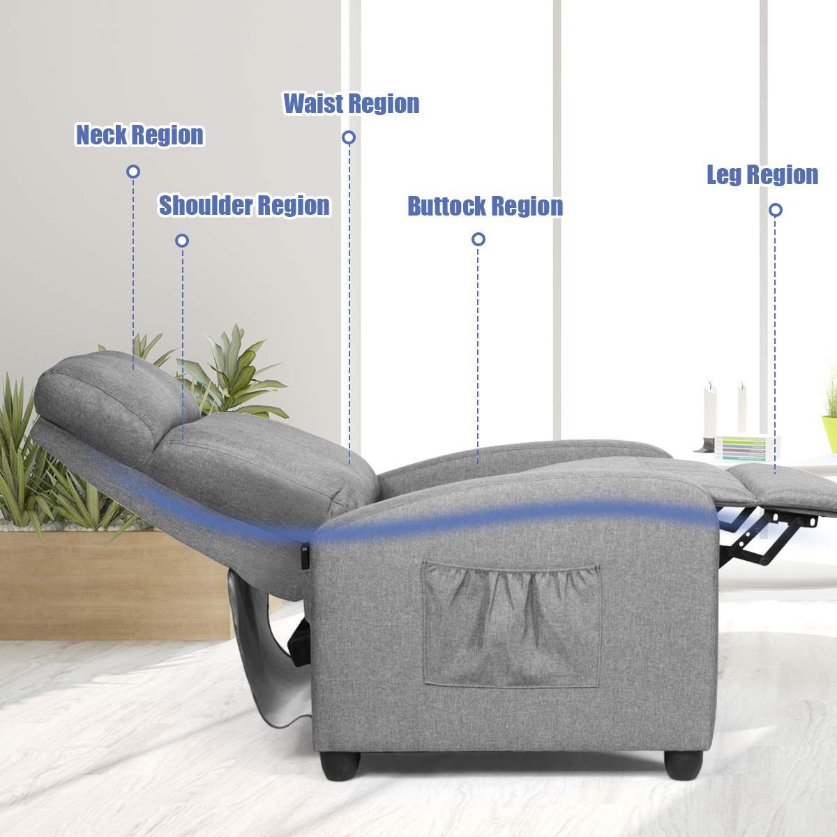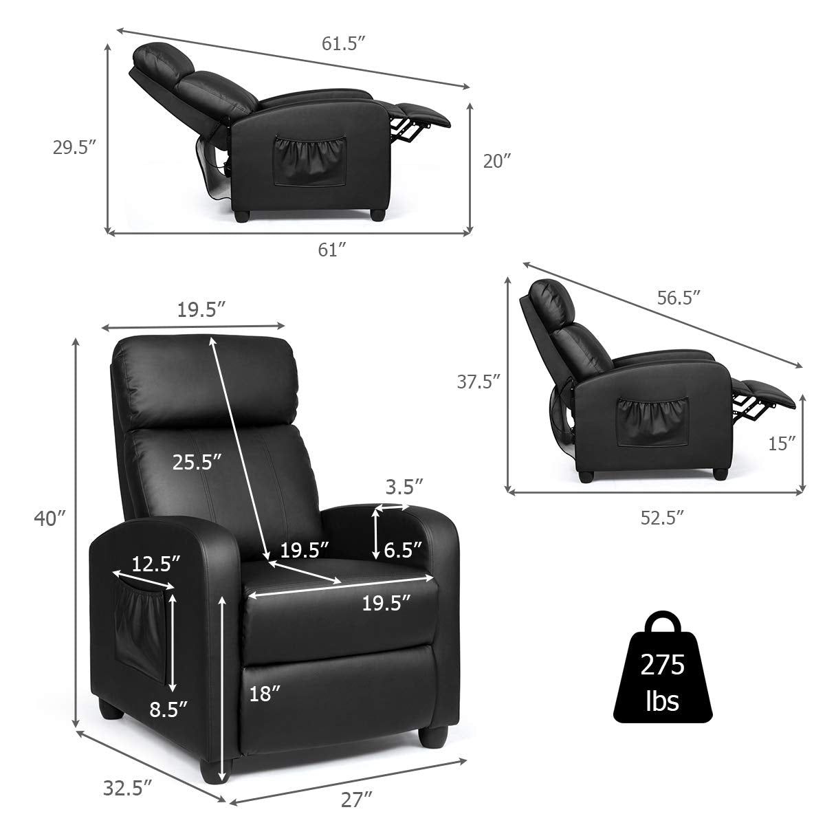 - Modern & Classic Style: The recliner chair with a pure color is stylish and classic, adding elegance to the room. It can be placed in offices, living rooms, and bedrooms and blends well with the surrounding environment. Side pockets for convenient storage and a smooth surface for quick maintenance.