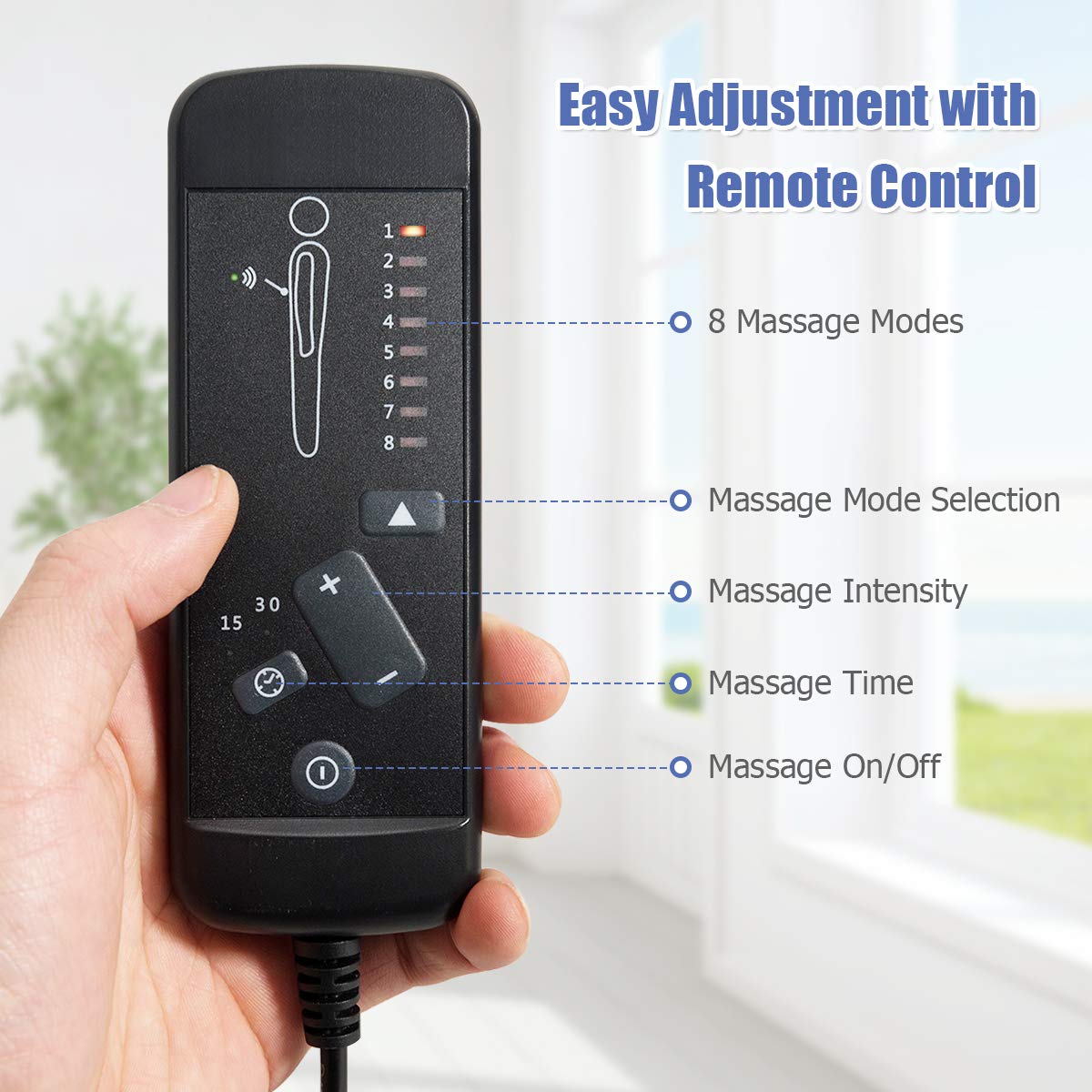 - Massage Chair for Luxurious Comfort: It comes with 8 massage modes, 2 vibrating nodes on the lumbar, and 3 intensities. A corded remote control is provided for convenient selection. You can also set the massage time to 15/30 minutes according to your requirements. It has passed UL certification to ensure safety.